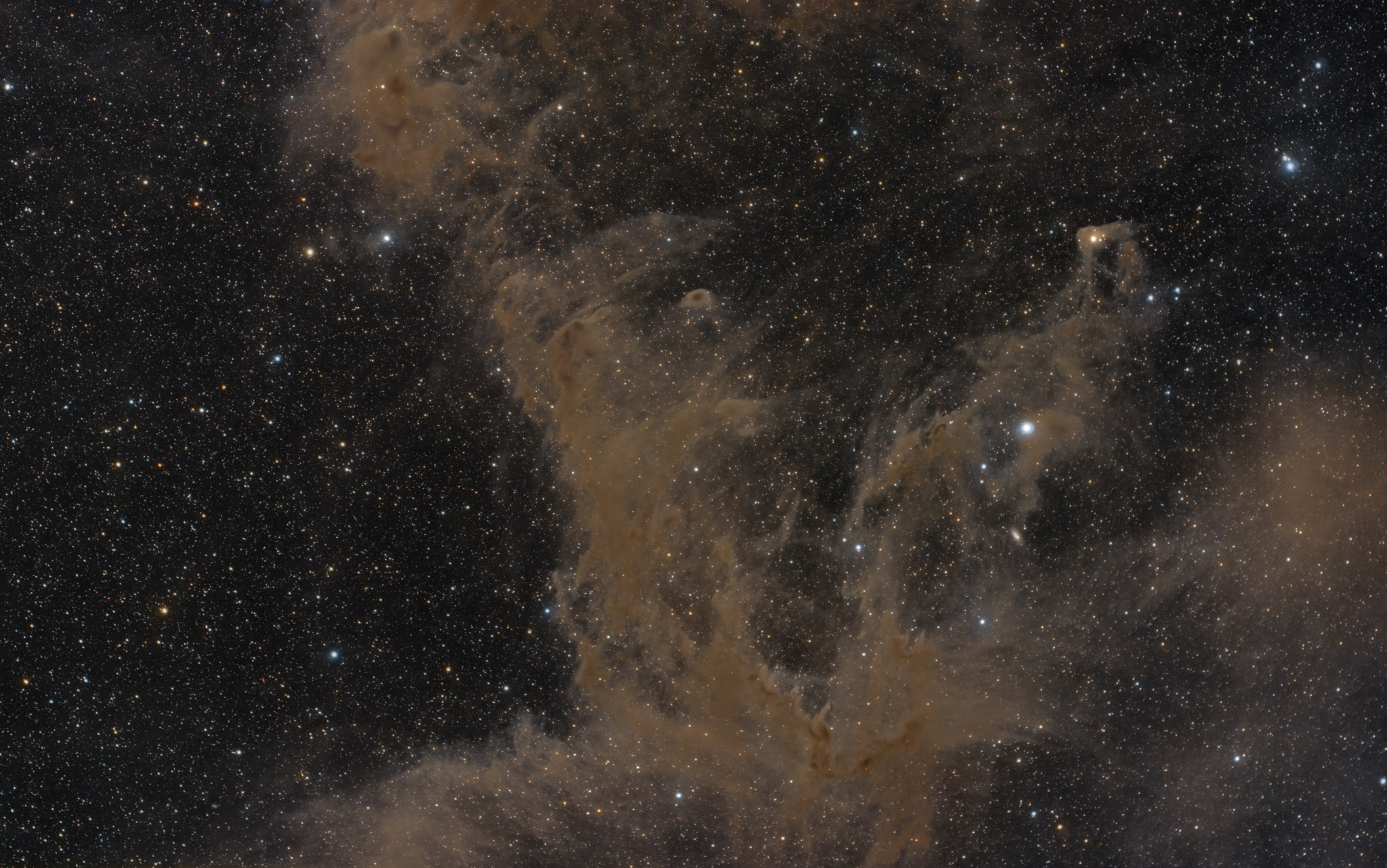 Im Gegensatz zur Chamäleon-I-Molekülwolke zeigt die Chamäleon-III-Molekülwolke keine Anzeichen von aktiver Sternentstehung - einfach nur kosmischer Staub und Gas.