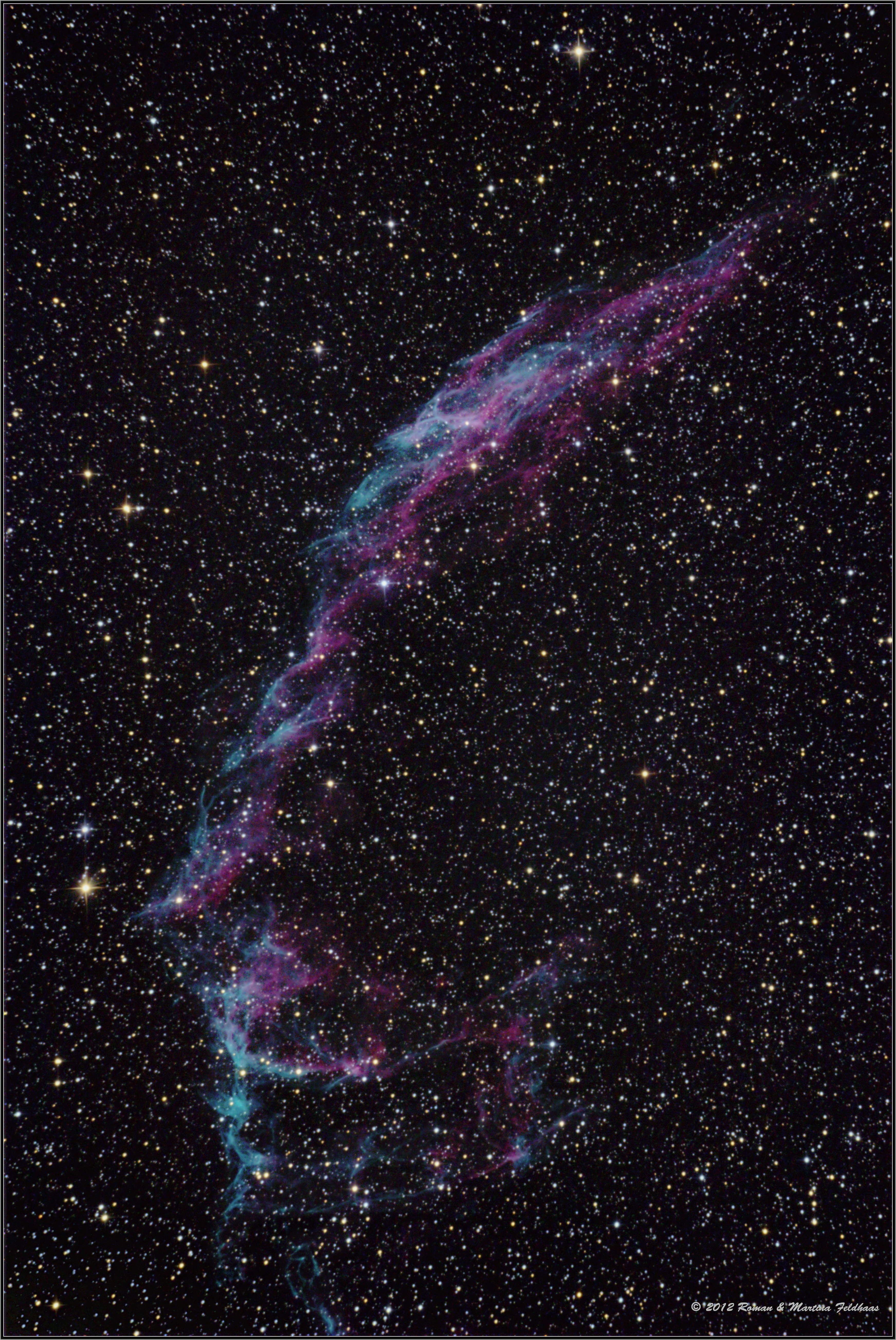 Der Cirrusnebel, auch bekannt als Cygnus Loop oder Schleier-Nebel, ist ein Überrest einer Supernova-Explosion, die vor ca. 18000 Jahren stattgefunden hatte.