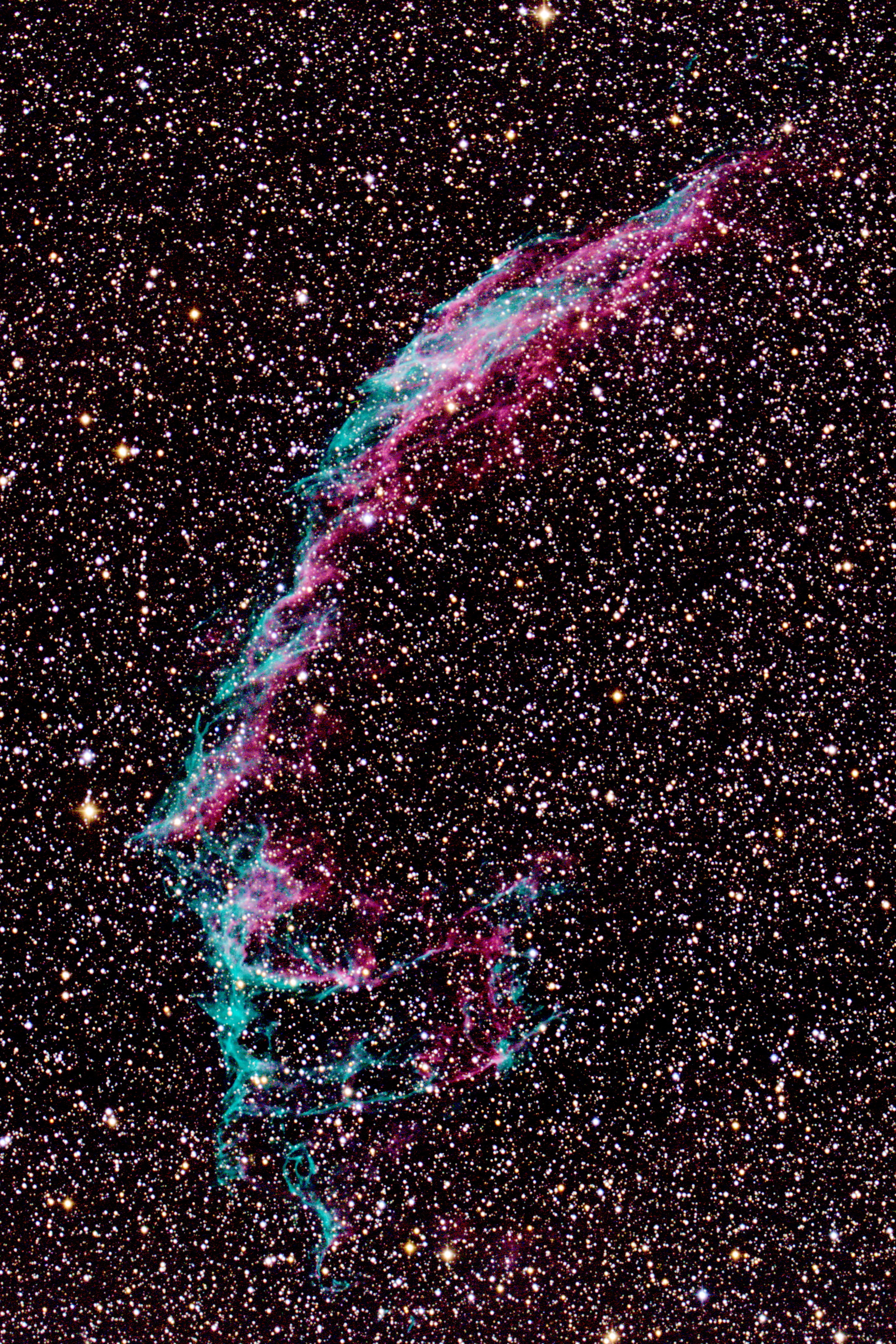 Östlicher Bogen des Cirrusnebels (NGC 6992 oben, NGC 6995 unten)
