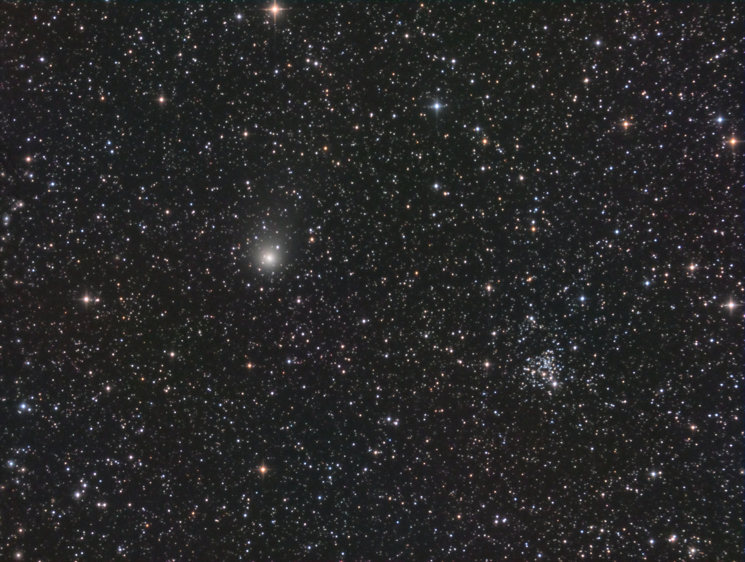 Comet C/2019 L3 (ATLAS) imaged on January 29th, 2022 in conjunction with the open cluster NGC 2266 in the constellation Gemini. The comet was then brightenning at magnitude 9 showing a white coma with 8' angular size and a faint dust tail about 15' in length to the north.