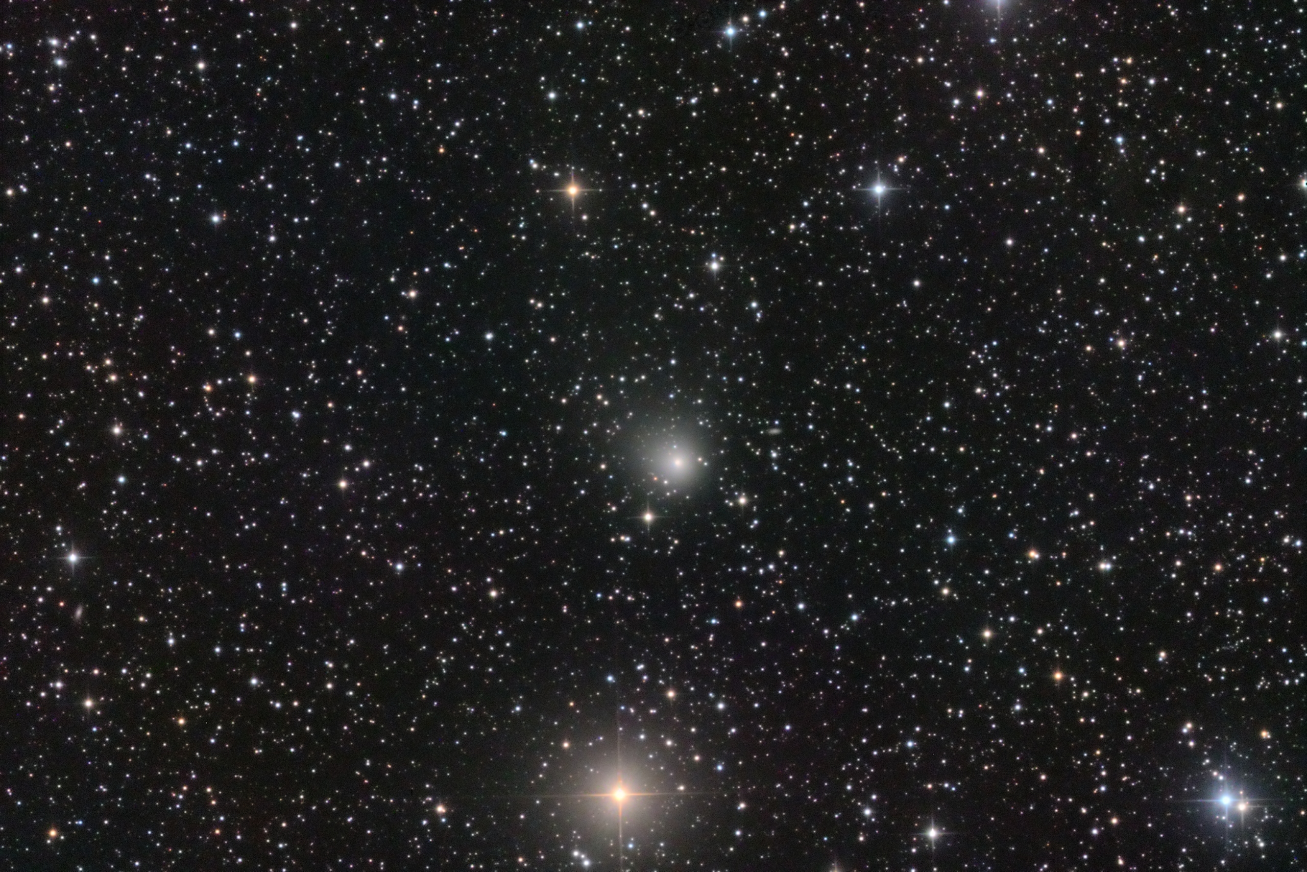 Comet C/2019 L3 (ATLAS) imaged on May 1st, 2022, at a distance of 4 AU from Earth and going away with a measured brightness in magnitude 10. Its white dusty coma has an angular size of 5' with gradual condensation. Its broad dust tail is barely visible to the northeast over this field at the edge of the Milky Way in the constellation Gemini.