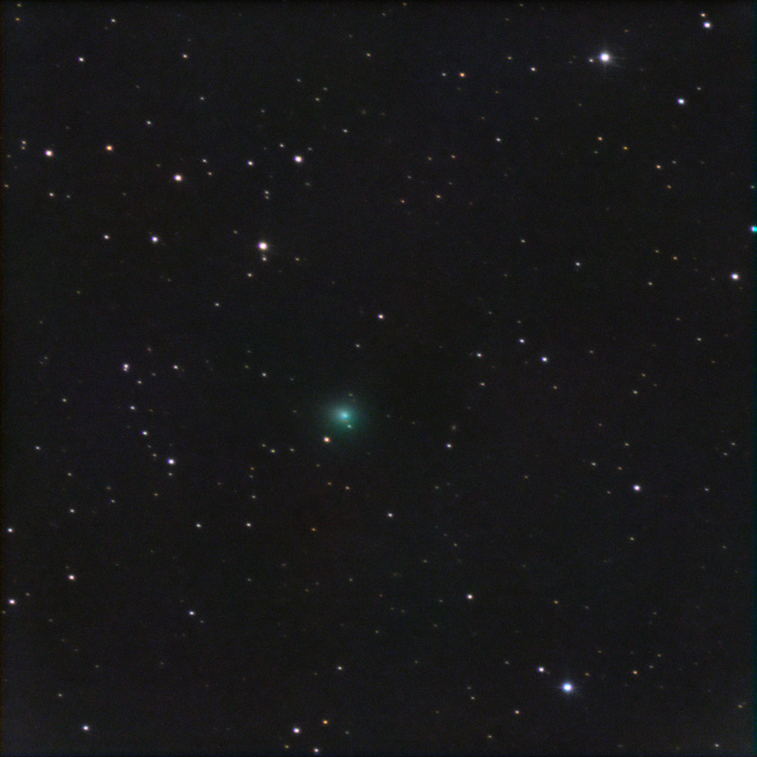 Comet C/2019 Y1 (ATLAS) imaged on 2020 February 16th, three weeks after my first image of this comet taken on January 27th. In this timelapse it has increased its brightness from magnitude 11.5 to 10 and coma angular size from 2 to 2.5 arcminutes, shining in a turquoise color.