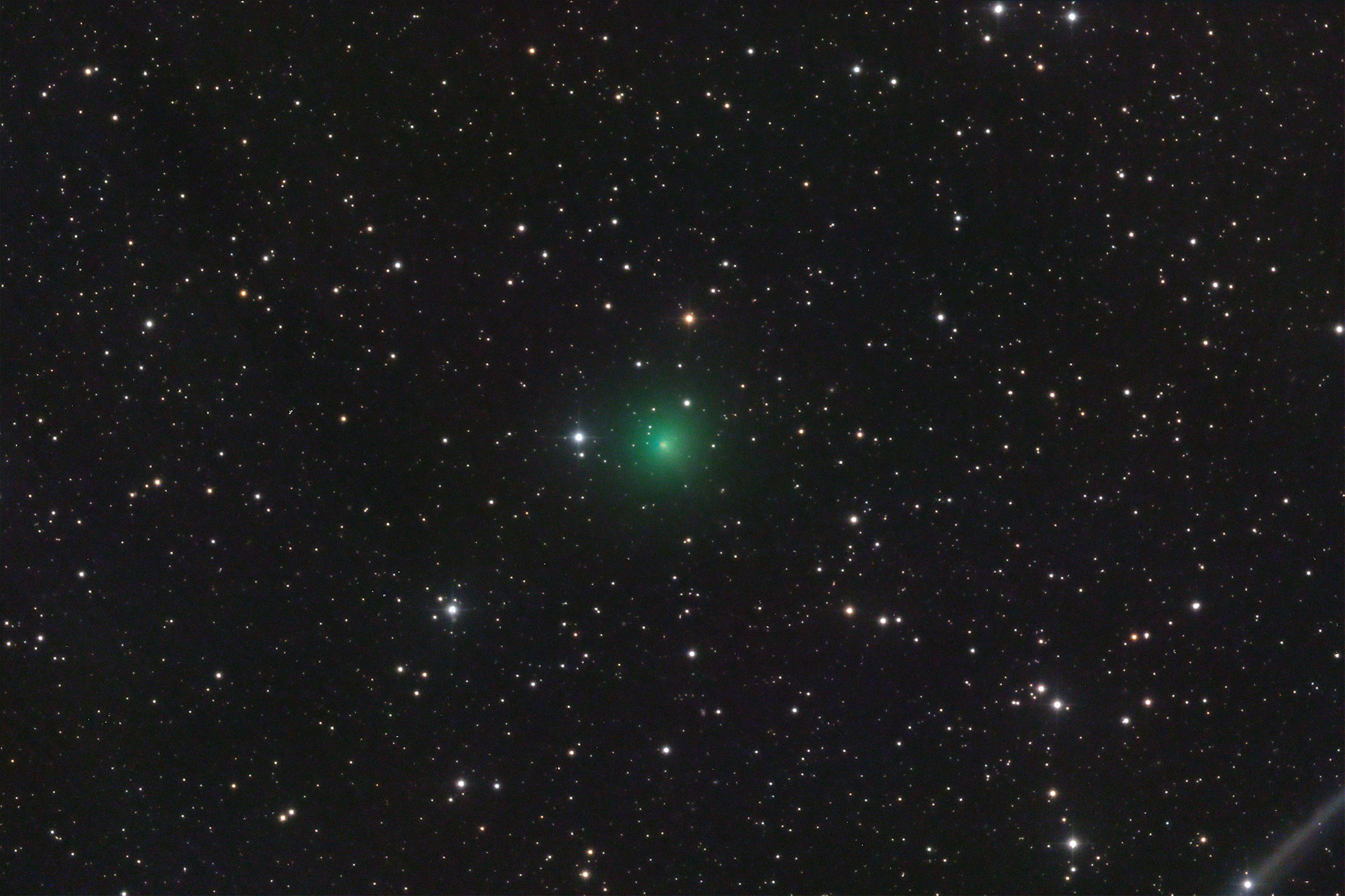 Image of new comet C/2020 F3 (NEOWISE) on 2020 May 14th, at magnitude 9.5 and with a 4' green coma seems that is beginning to emit a short ionic tail (toward down-right). In fast increasing of brightness could be observable at the naked eye in July.
