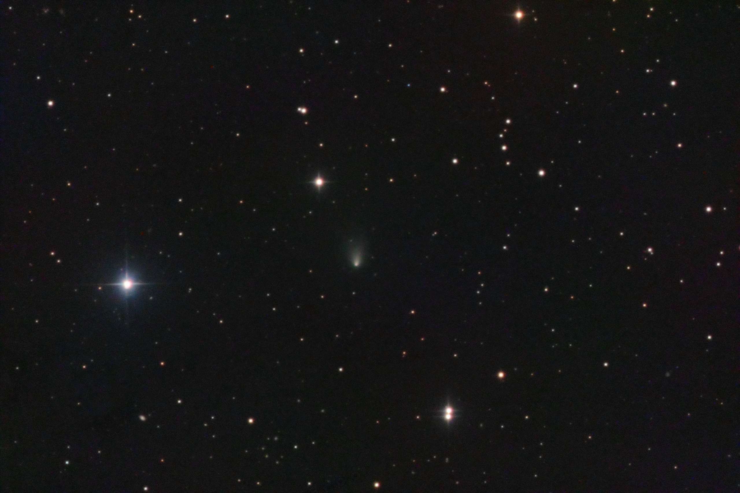 After four months without imaging it due to low elongation, comet C/2021 A1 (Leonard) regains height above the horizon from the northern hemisphere. In this image I took on October 5th, 2021, the comet has drastic changed its appearance with a 2.5' angular size coma with slight greenish hue, strong central condensation, and a 3' long V-shaped tail almost to antisunward. Its brightness has risen markedly to magnitude 12, increasing the slope in the light curve and repositioning the comet with a possible maximum visible to the naked eye in December.