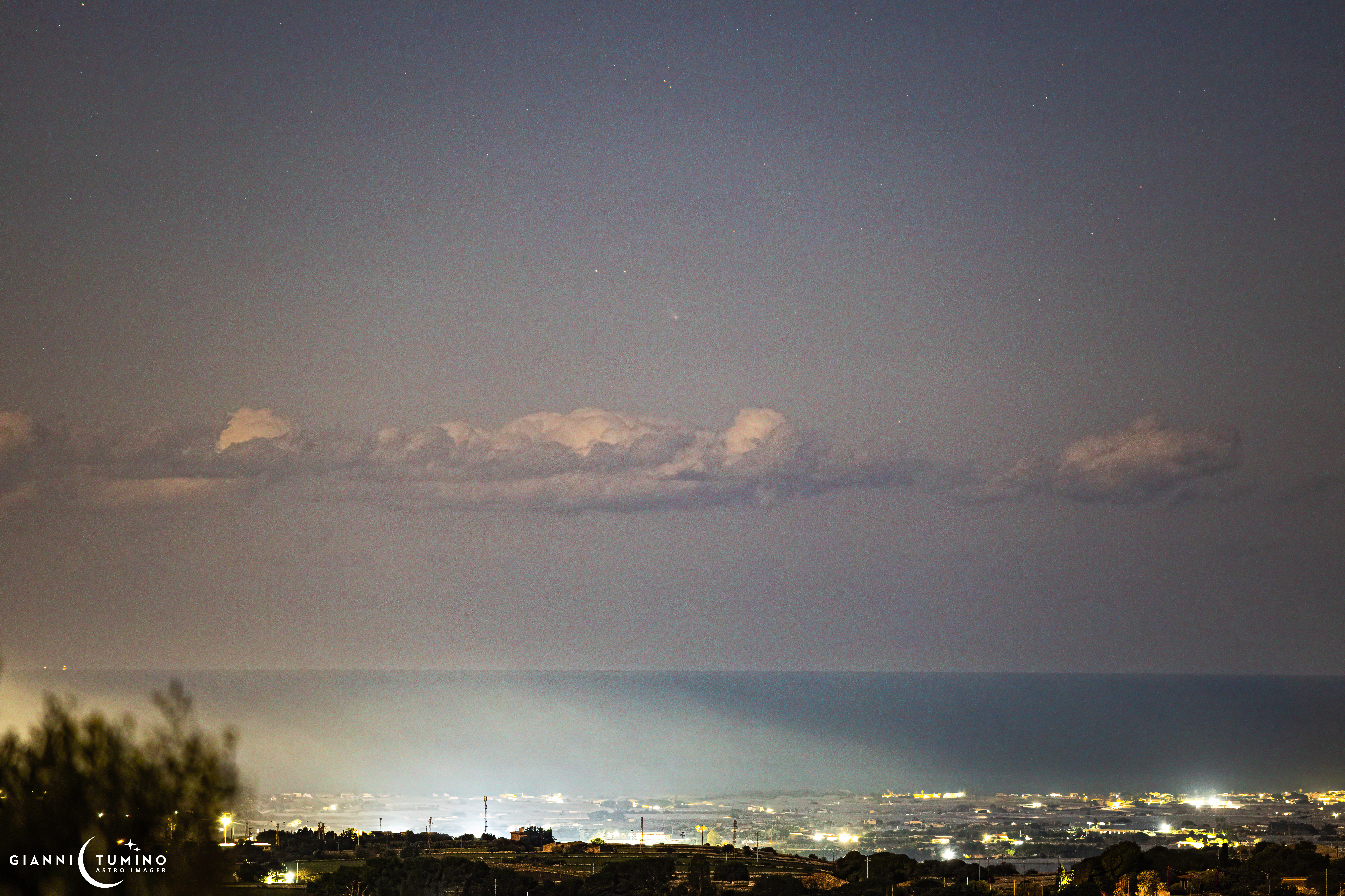 Comet C/2021 A1 (Leonard) in the moonlight (moon phase 96%).