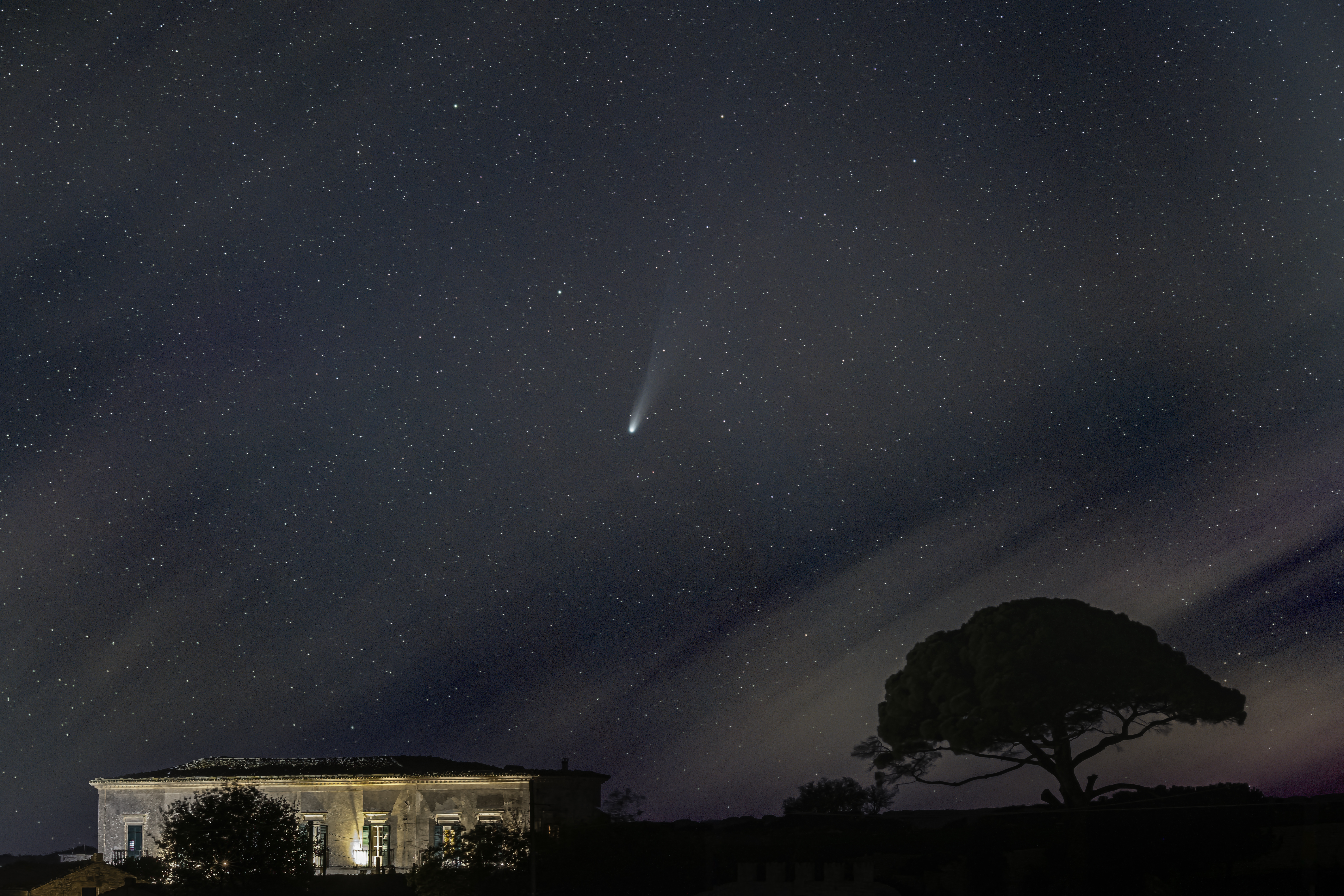 Comet C/2025 A6 (Lemmon) above the Sicilian countryside