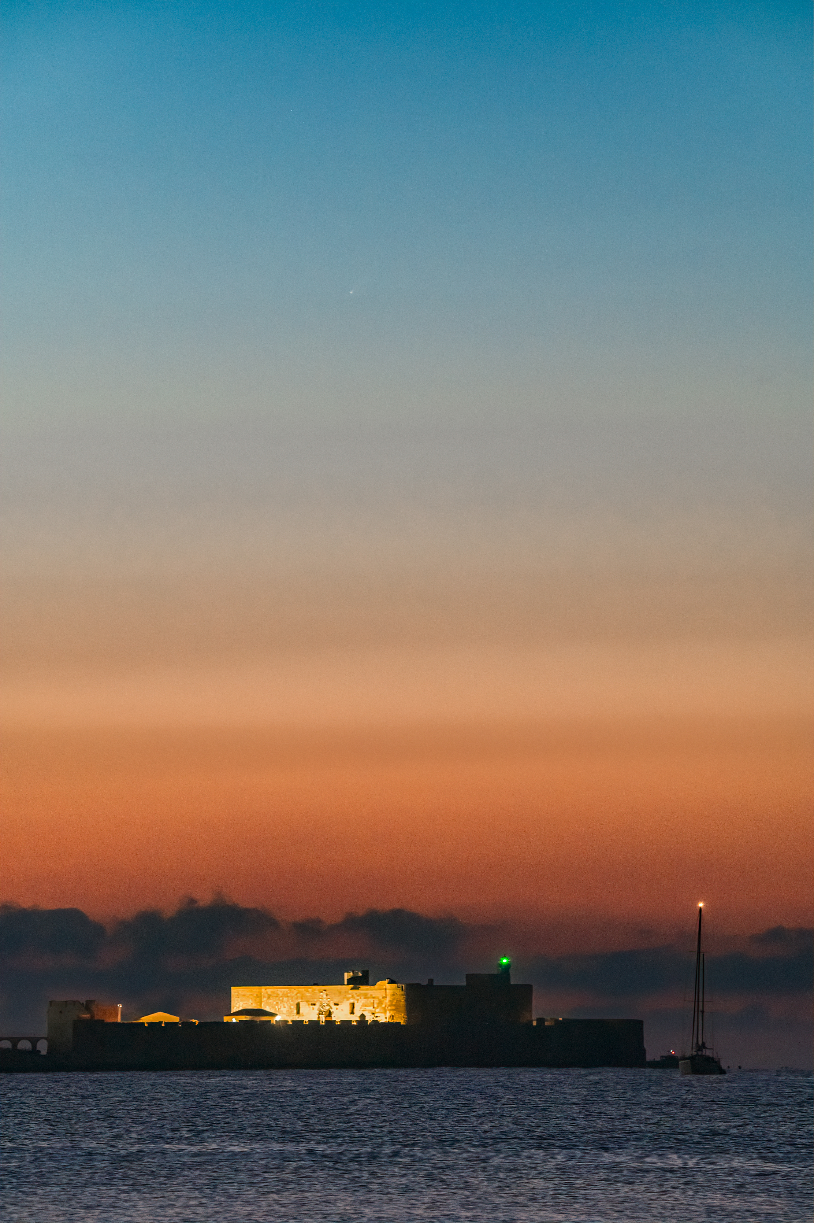 Very first images of Comet C/2023 A3 Tsuchinshan-ATLAS that this morning, just before dawn, I photographed above Castello Maniace (SR). The comet still appears very faintly luminous. The hope is that over the days the brightness will increase. We'll see!