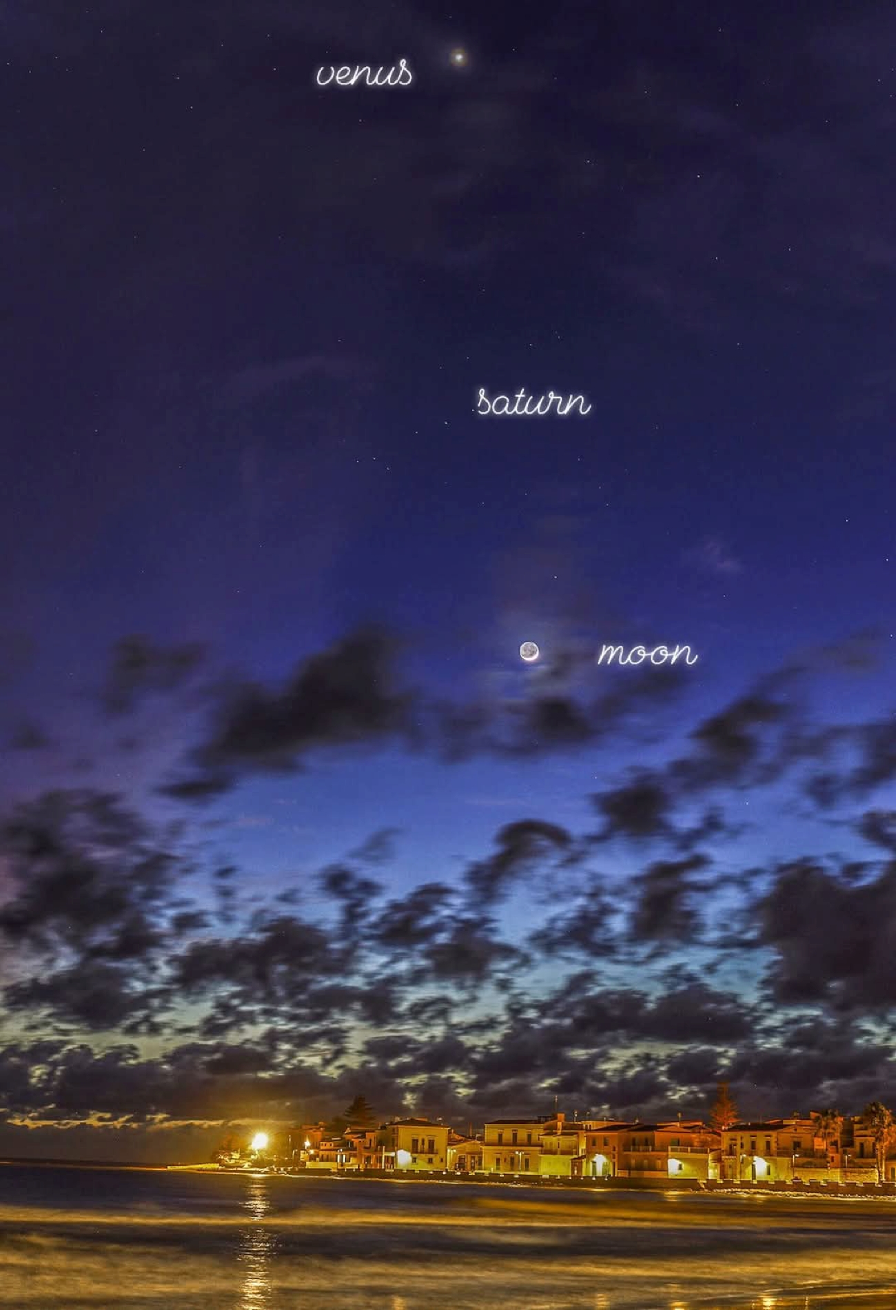 Leserbilder Astronomie: Conjunction special Venus, Saturn, Moon Sicily-Italy Sampieri