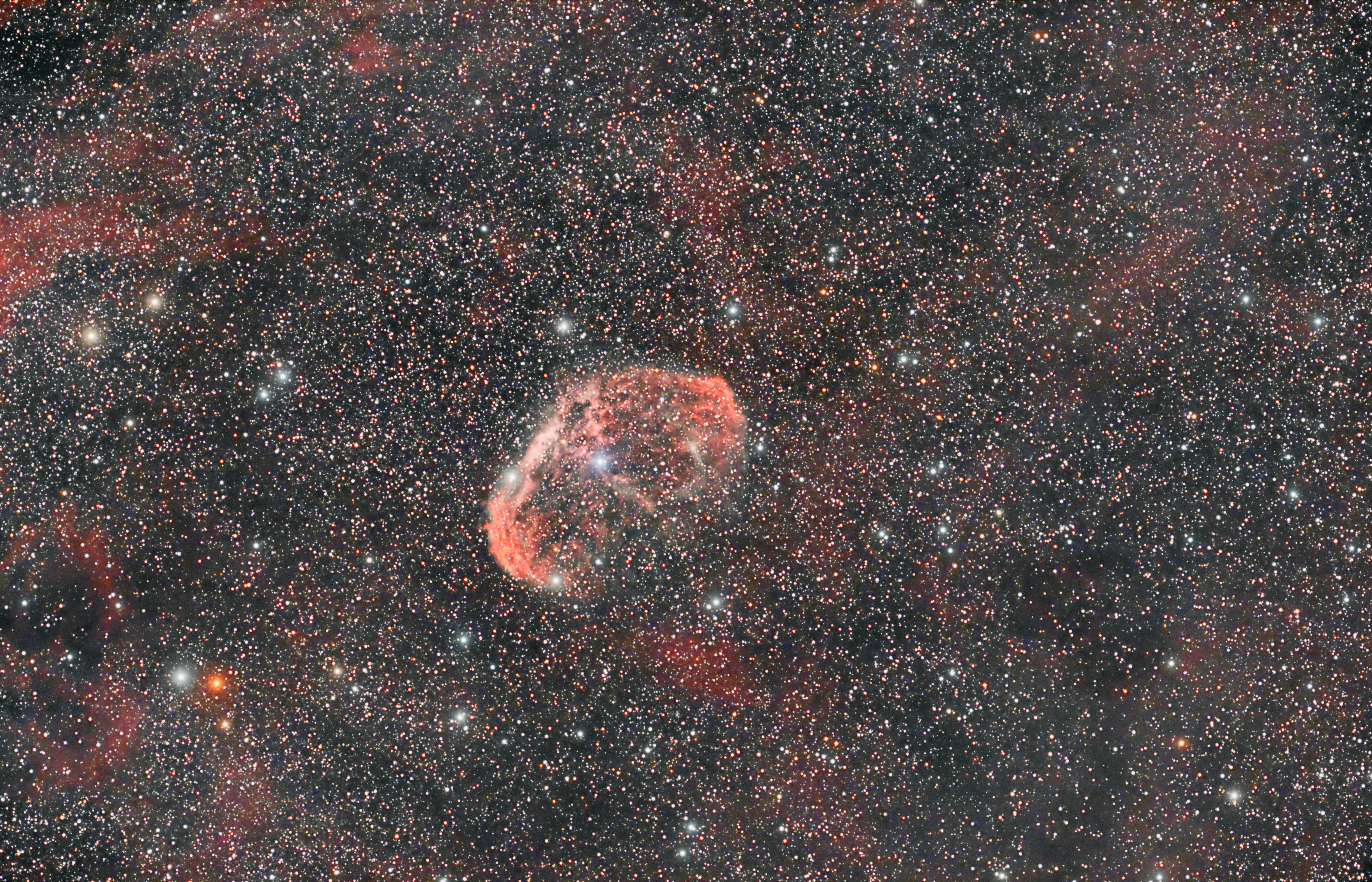 Erst mit der astromodifizierten Canon 600D gelang es, die inneren Strukturen des filigranen Gebildes sichtbar zu machen. Mit der Canon 60Da war vor zwei Jahren nur die Hälfte des "Randes" zu sehen.
