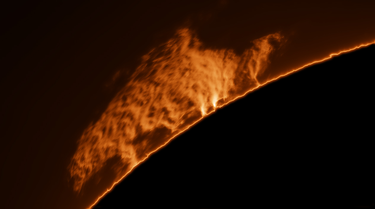 Riesige Protuberanzengruppe im Südwesten der Sonnenscheibe.