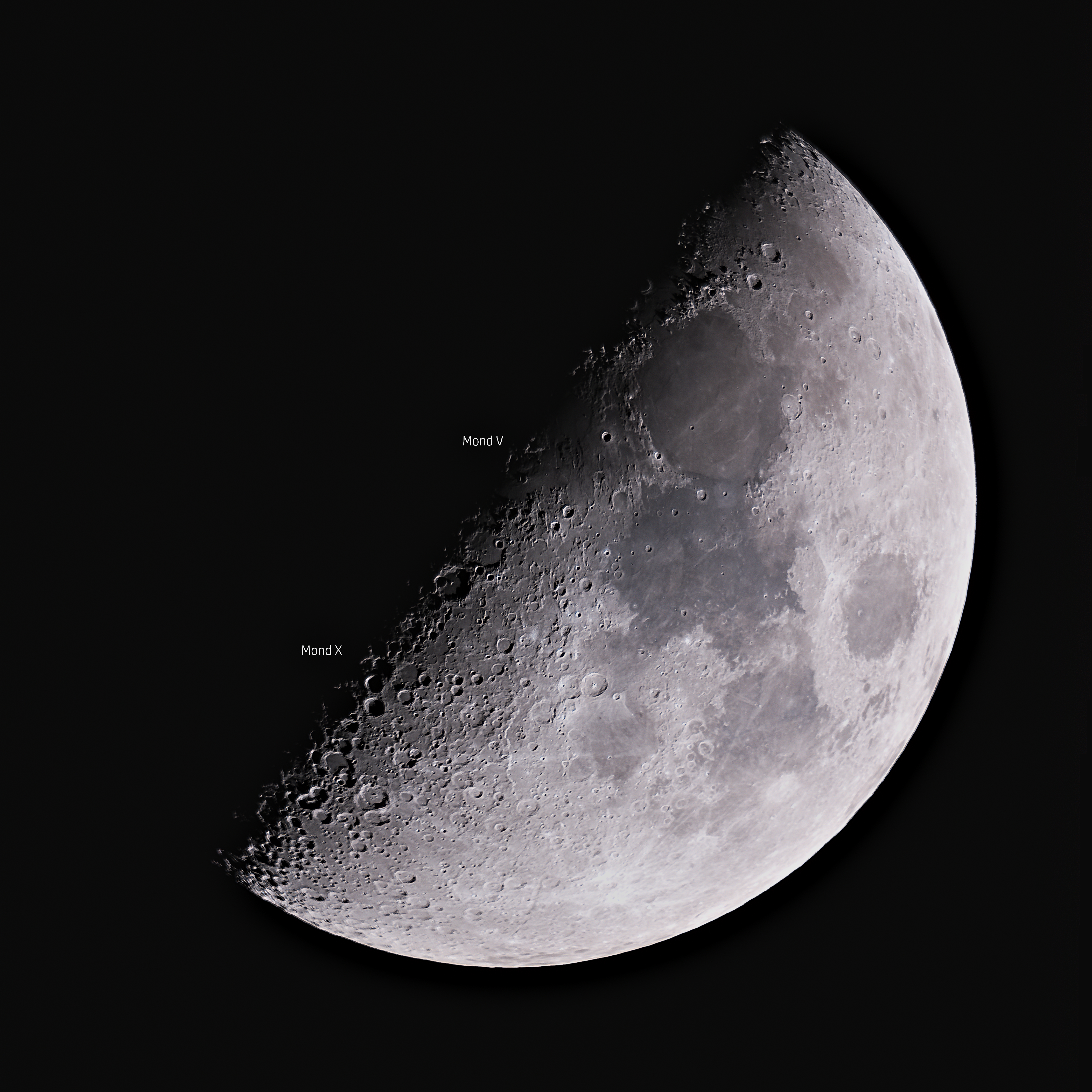 Zwei auf einen Streich. Das "Mond X" und das "Mond V", aufgenommen am 8. Februar 2022 zwischen 19:47 und 19:49 Uhr. Es waren ausgezeichnete Bedingungen im Voralpenland.