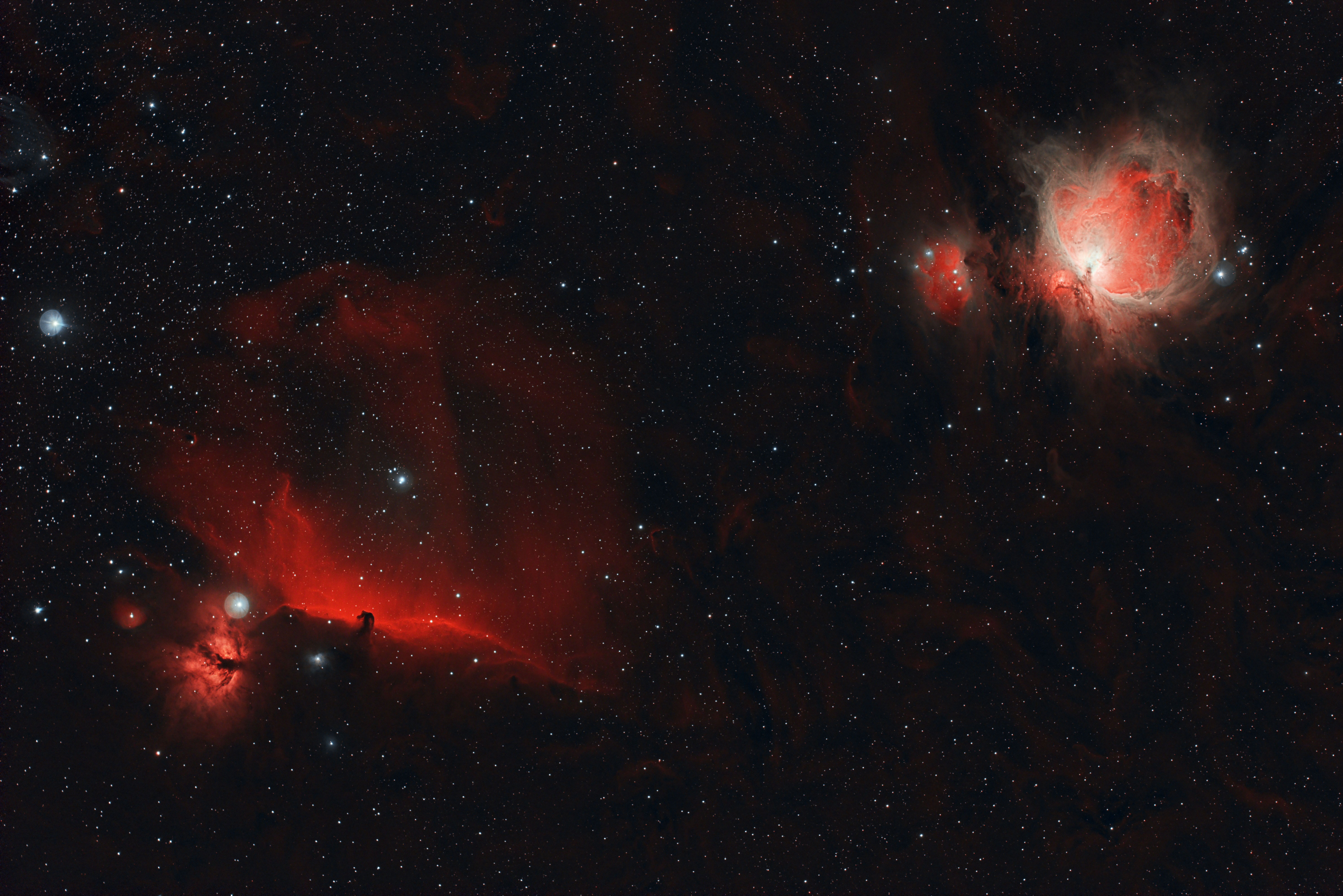 Die Hauptobjekte des Orion durch einen Dualbandfilter im Visier: Das Trapez ist beim Hereinzoomen erkennbar!