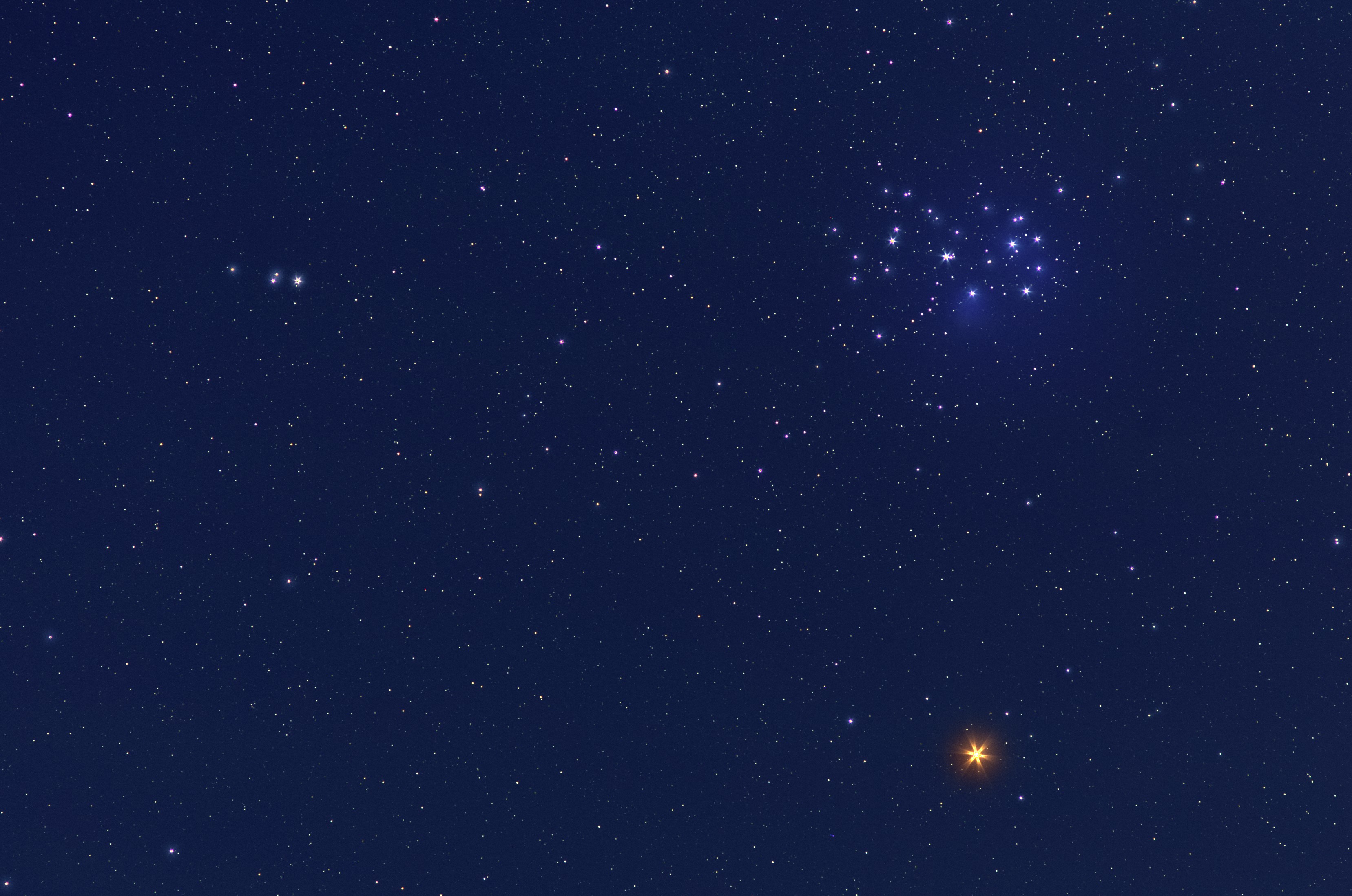 Nicht ganz so spektakulär wie im letzten Frühjahr die Venus, wandert in den kommenden Tagen unser roter Nachbar dicht an den Plejaden vorbei. Die Bewegung eines Planeten vor dem Sternenhintergrund lässt sich somit sehr schön beobachten.
