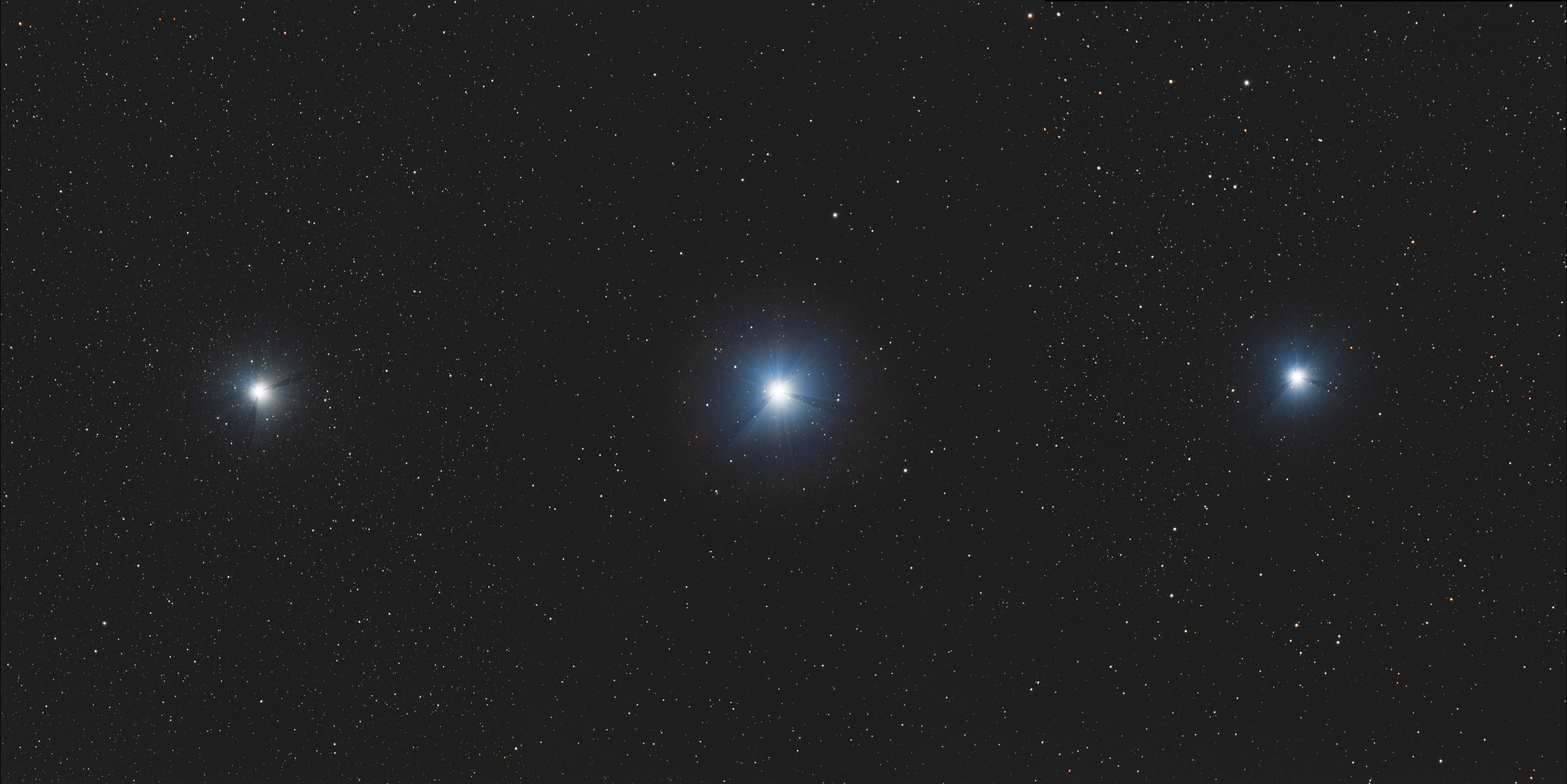 Deneb, der Hauptstern des Schwans, die helle Wega in der Leier und Atair im Adler sind die prominentesten Sterne des Sommerhimmels und bilden zusammen das sogenannte Sommerdreieck. Um diese drei Sterne zu vergleichen, fertigte ich dieses Foto an.