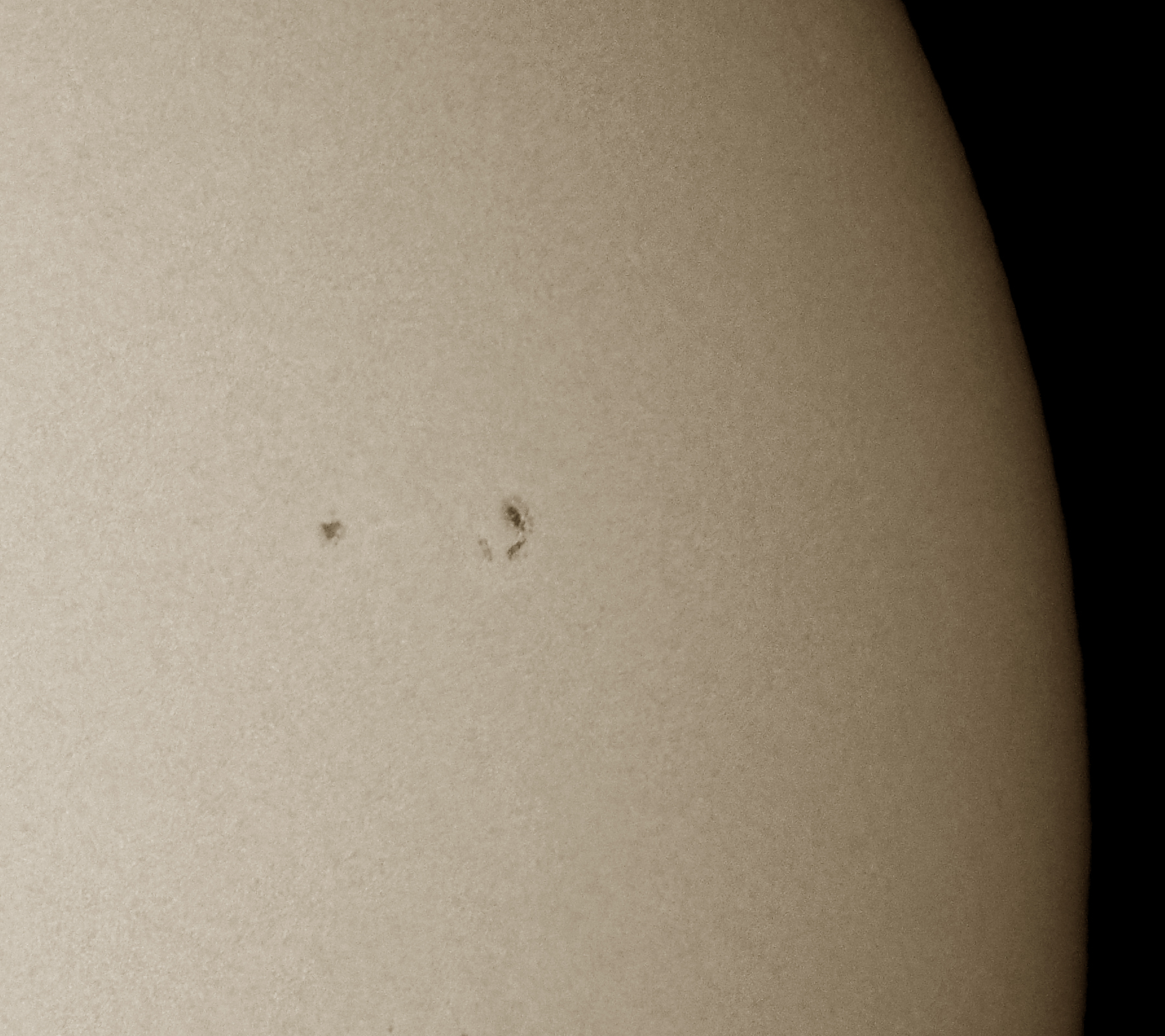 Die AR 12720 gehört noch zum ausgehenden 24. Sonnenfleckenzyklus. Obwohl sehr klein, sind doch schwach Lichtbrücken zu erkennen. Die Beobachtungsbedingungen waren an diesem Sonntagvormittag aber sehr bescheiden.
