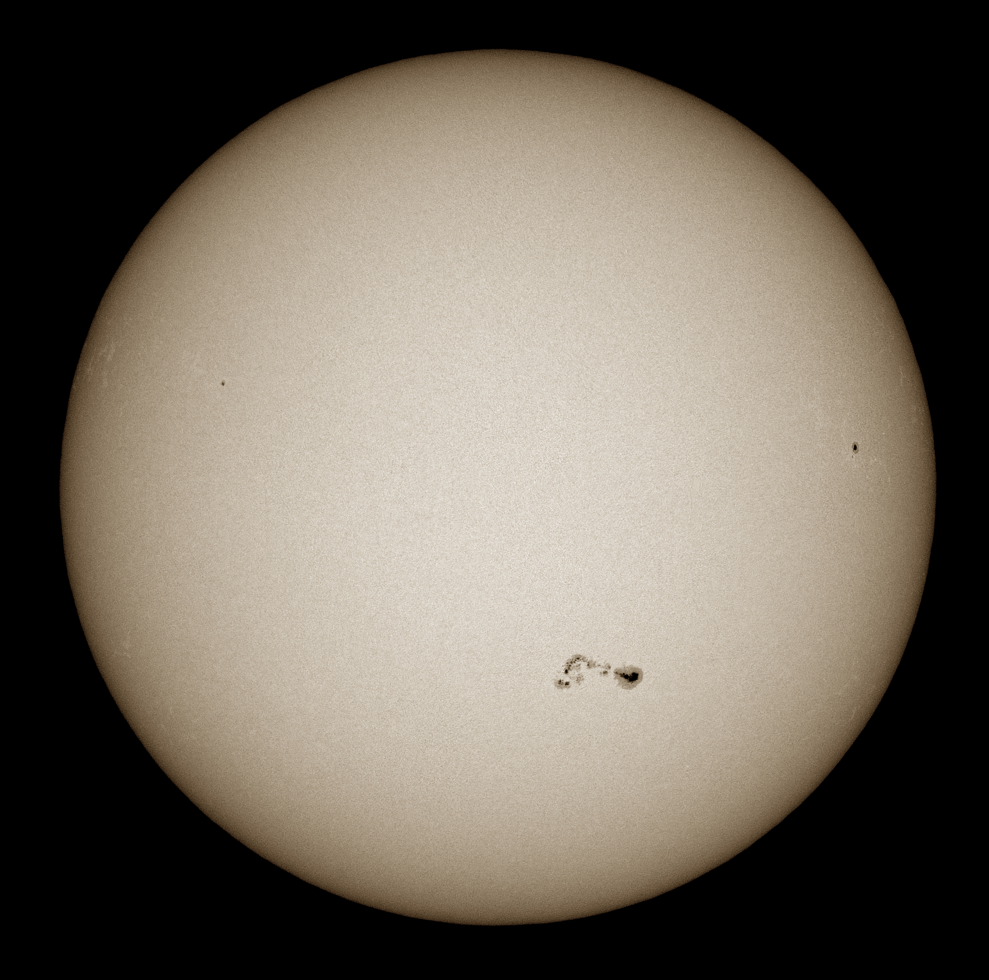 Dieser große Sonnenfleck ist schon eine imposante Erscheinung, ein Astro-Kollege meldete in einem Forum sogar eine knappe Sichtung mit dem bloßen Auge (und Sonnenfolie natürlich).
