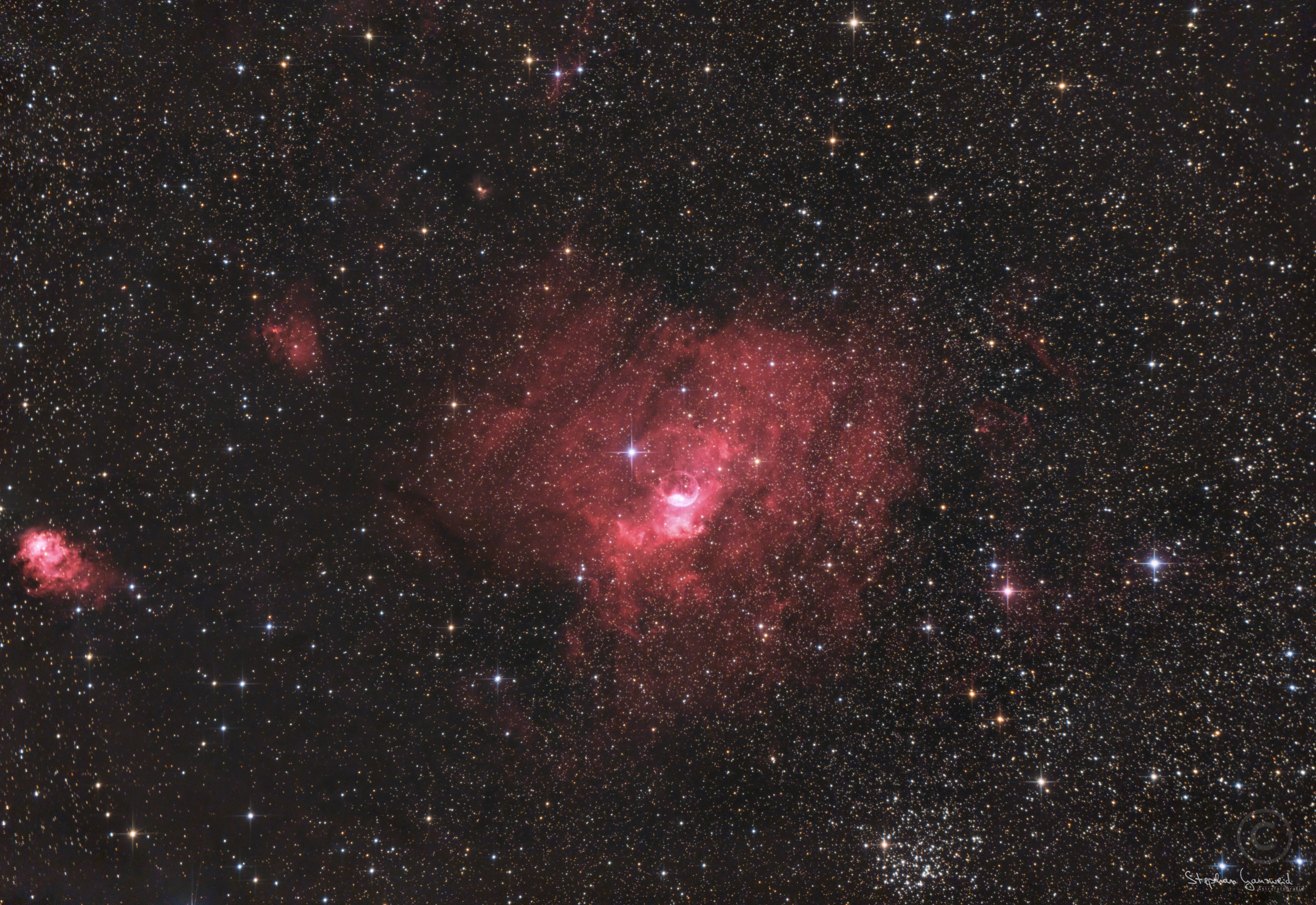Der Blasennebel (Bubble Nebula) befindet sich im Sternbild Kassiopeia und ist etwa 7100 Lichtjahre entfernt. Insgesamt wurde die Region über vier klare Nächte belichtet. Sowohl ohne Filter als auch mit dem STC-Duo-Narrowbandfilter.