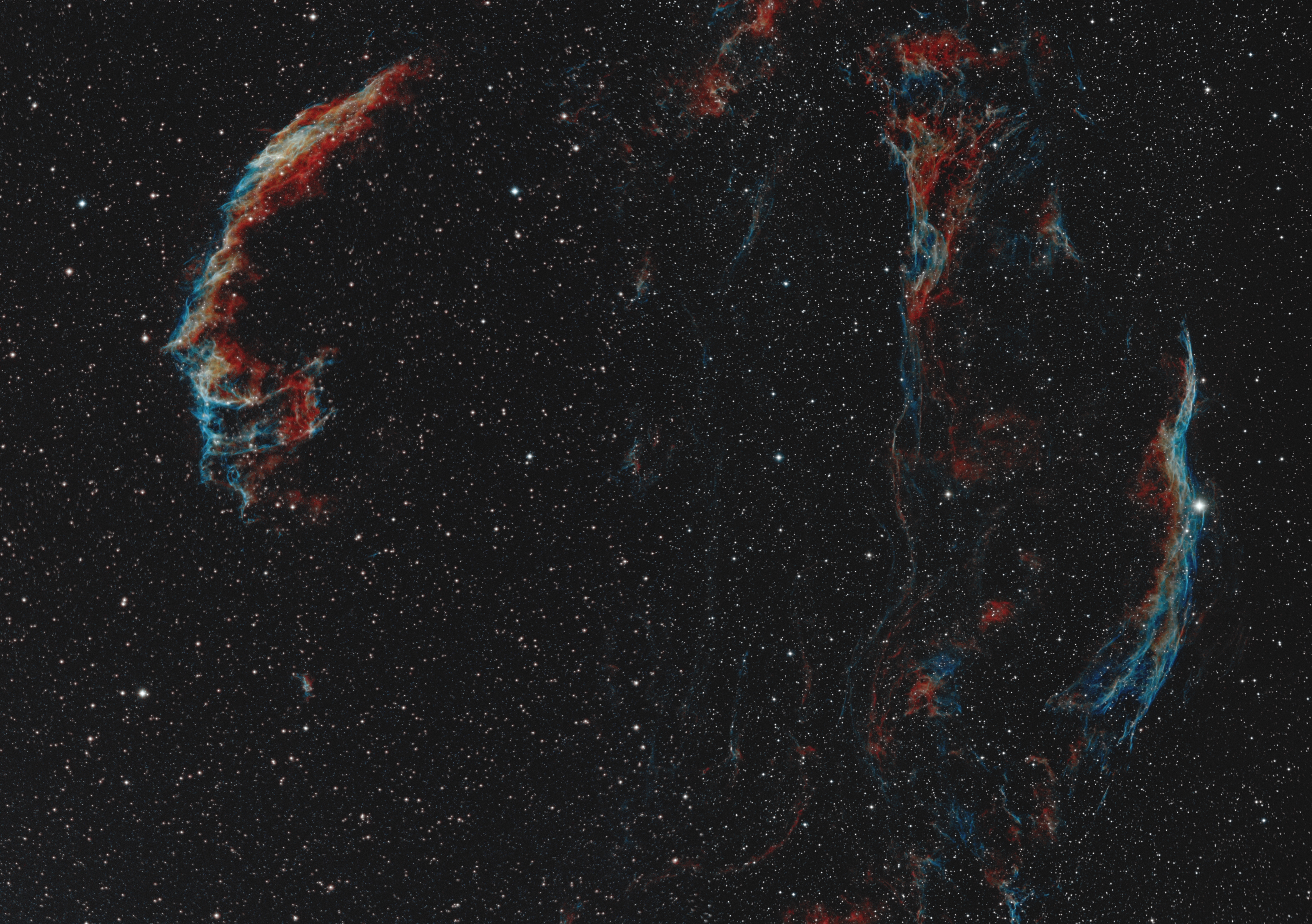 Der Cirrus-Nebel-Komplex ist ein Supernova-Überrest in rund 1500 Lichtjahren Entfernung. Die Aufnahme ist ein Zweifach-Mosaik. www.far-light-photography.at