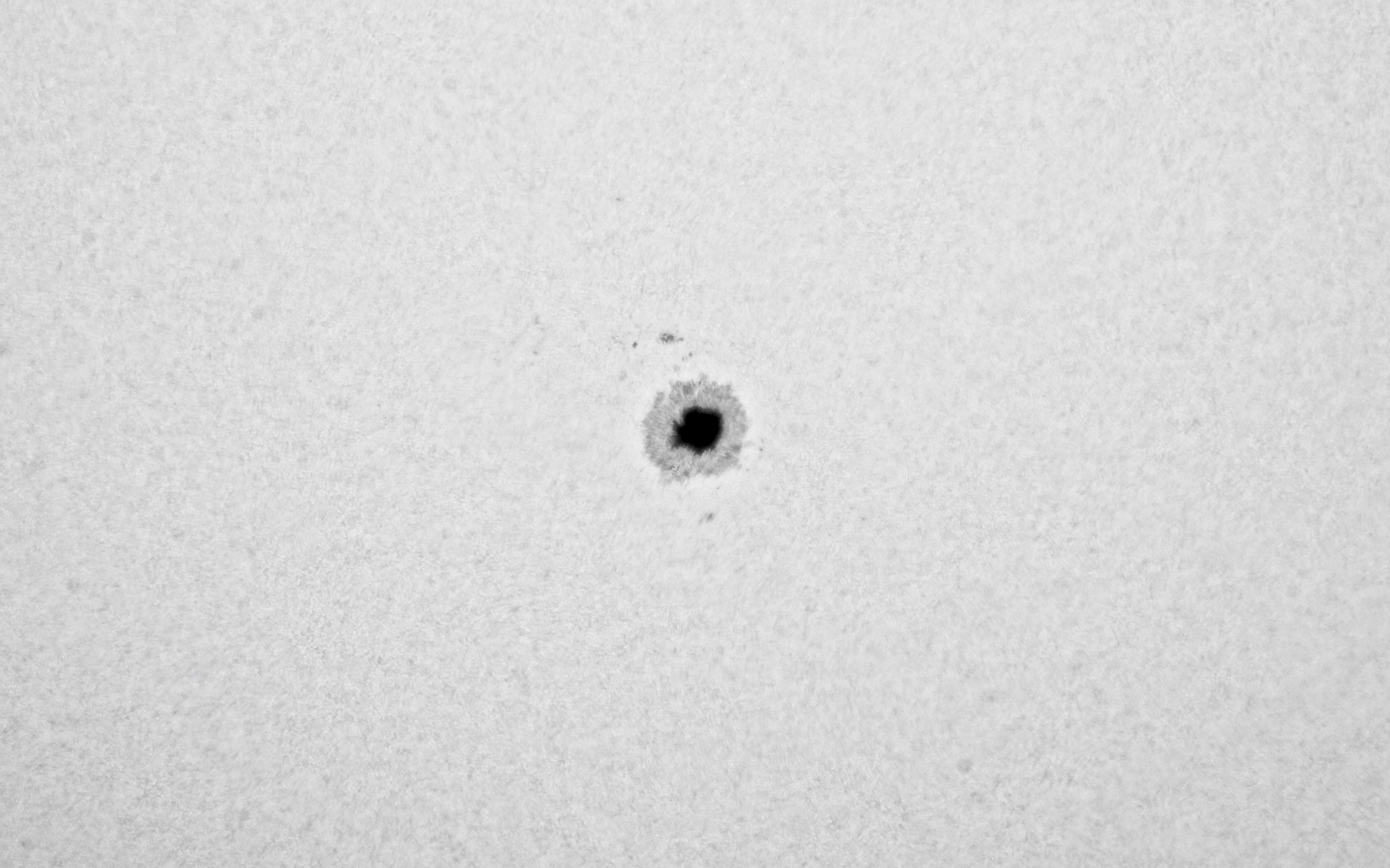 Der Fleck 2546 ist noch immer beeindruckend und lässt sich mit DSLR mit einem Baader Hyperion 13 mm so ablichten, dass man die Struktur der Penumbra (grauer Fleckenrand) schön erkennen kann.