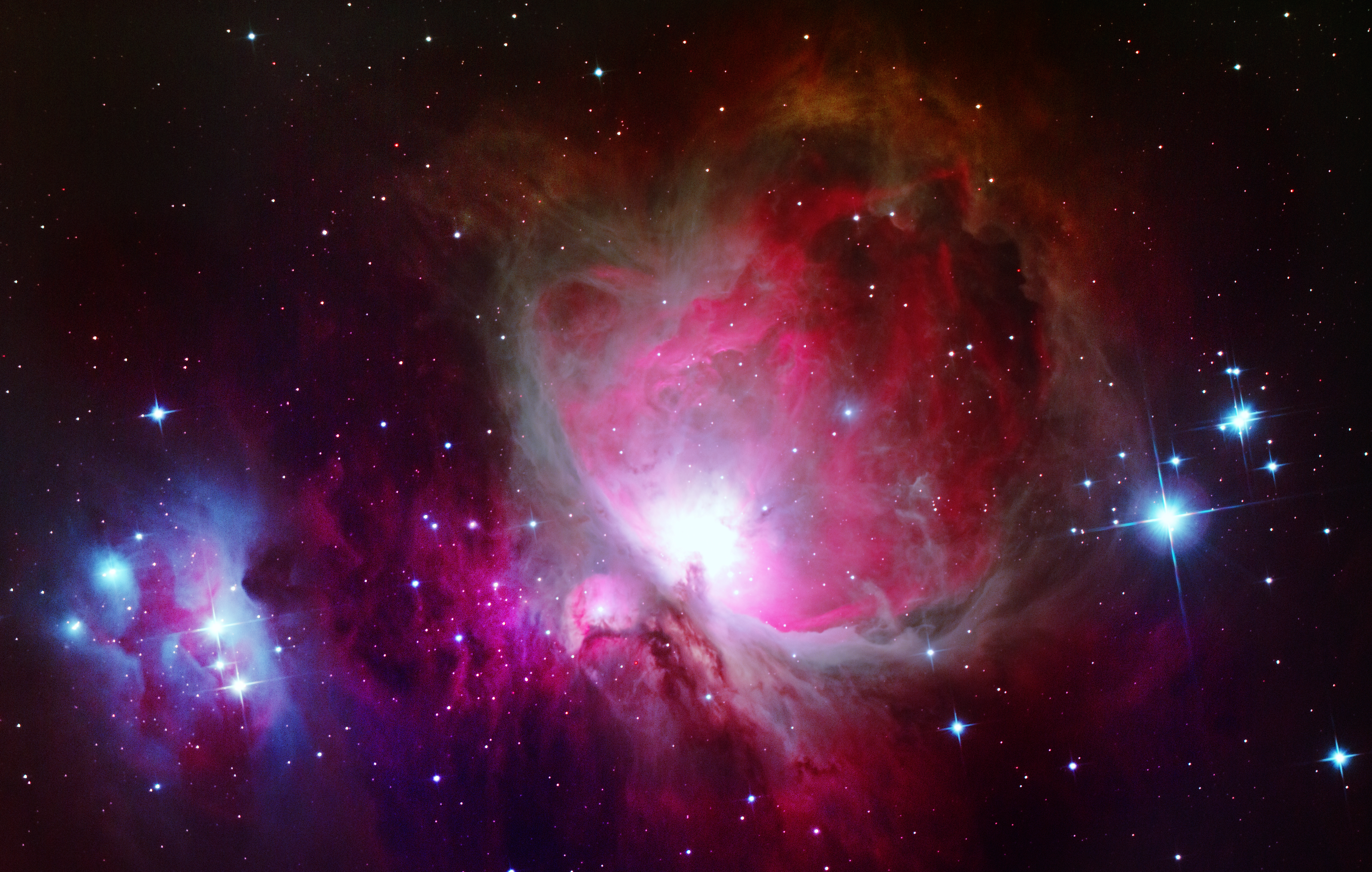 Der große Orionnebel ist eines der berühmtesten Objekte am Winterhimmel und eines der aktivsten Sternentstehungsgebiete in der galaktischen Nachbarschaft der Sonne: Er ist etwa 1500 Lichtjahre von der Erde entfernt.