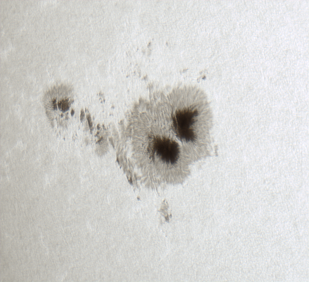 Und hier ist die Aufnahme des großen Flecks AR 14079. Lichtbrücken, ziselierte Details der Penumbra, da hat er einiges zu bieten! Ich hoffe, dass das Wetter so bleibt und weitere Aufnahmen möglich sind. Die Entwicklung dürfte interessant werden.