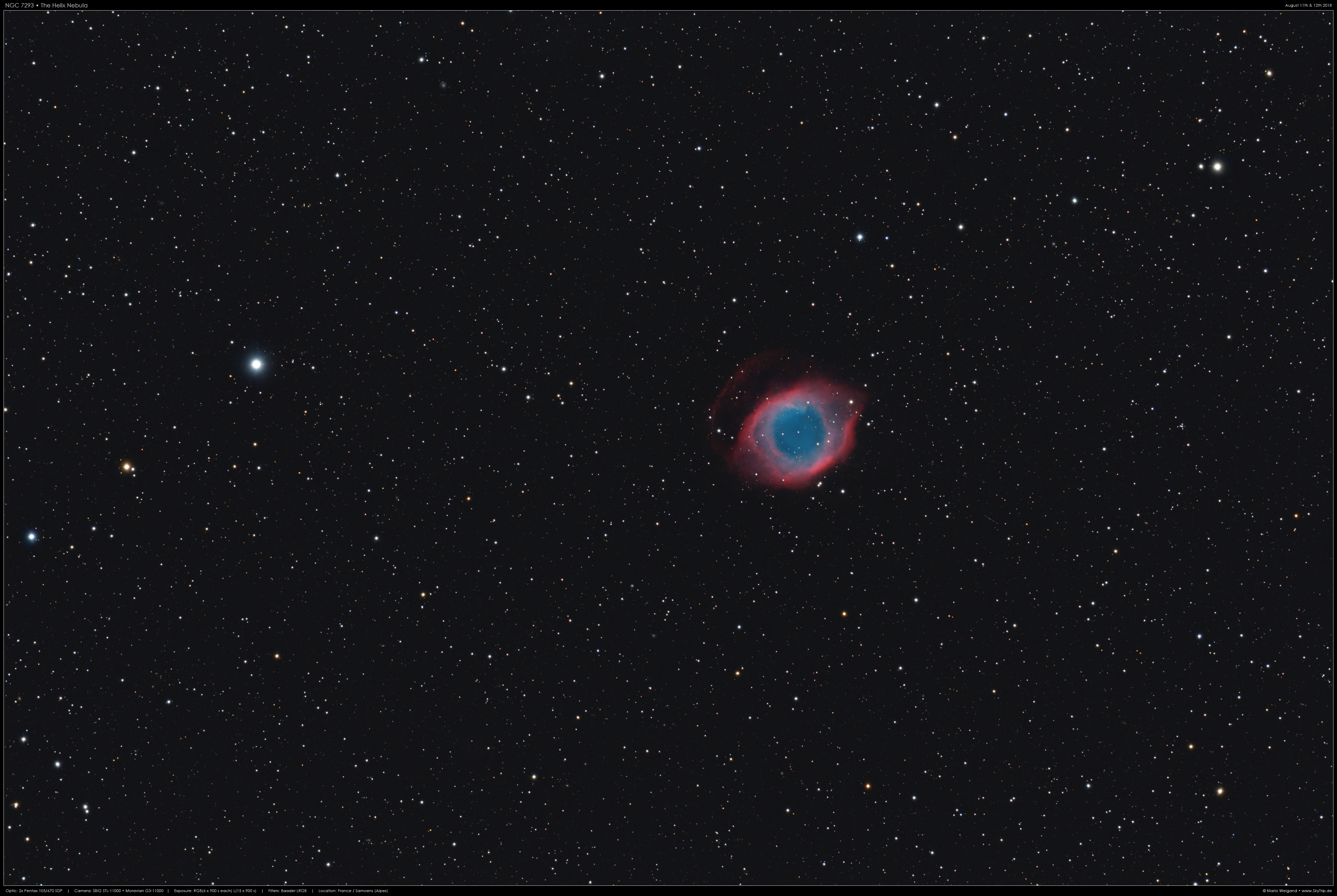 NGC 7293 – auch als Helixnebel bekannt – ist der der Sonne am nächsten gelegene planetarische Nebel. Die Entfernung beträgt nur rund 650 Lichtjahre.