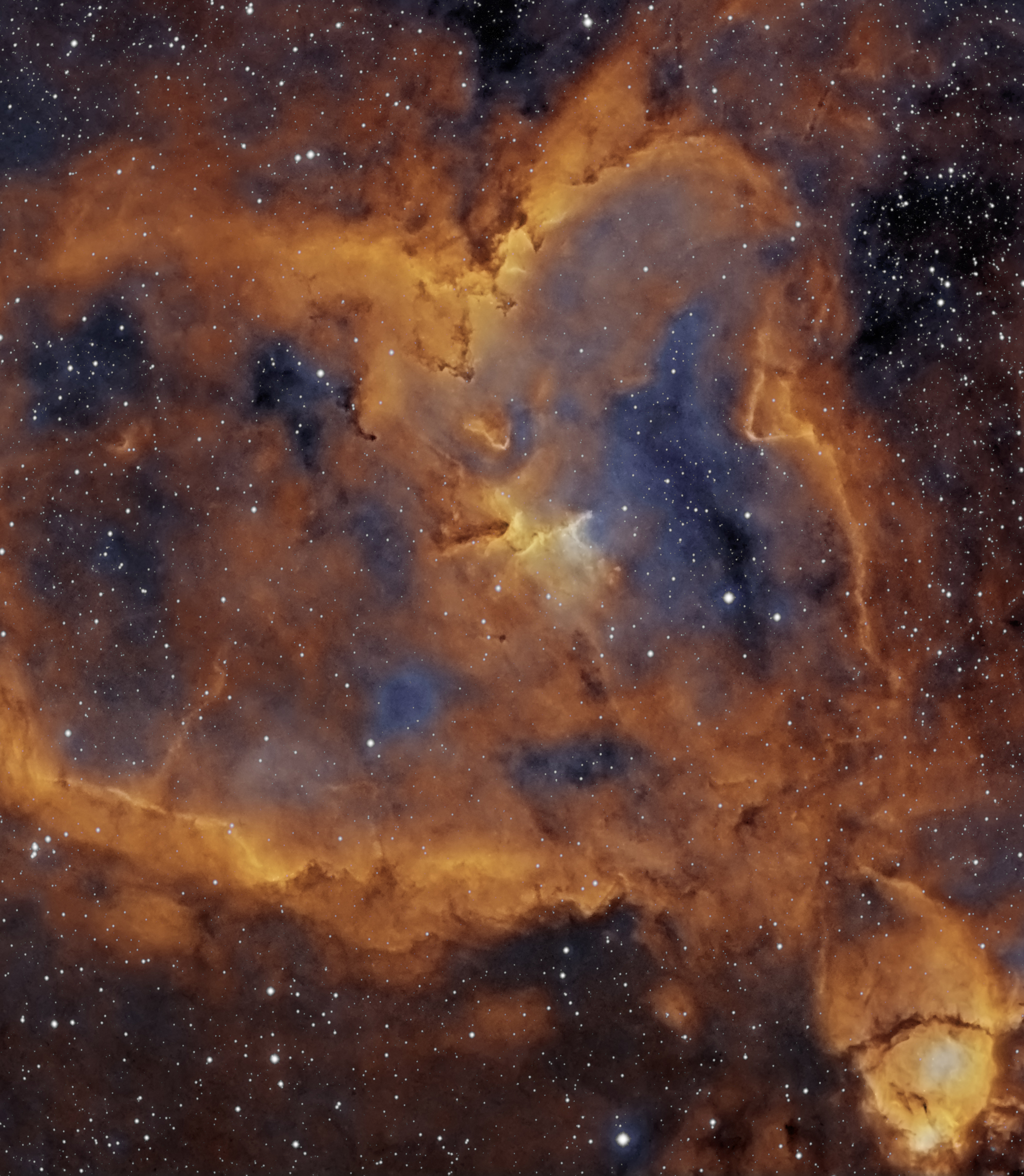 Die Luminanz wurde durch 32 x 900 s H-Alpha erstellt. Die Farbe stammt von einem H-Alpha-OIII-Komposit mit DSLR.