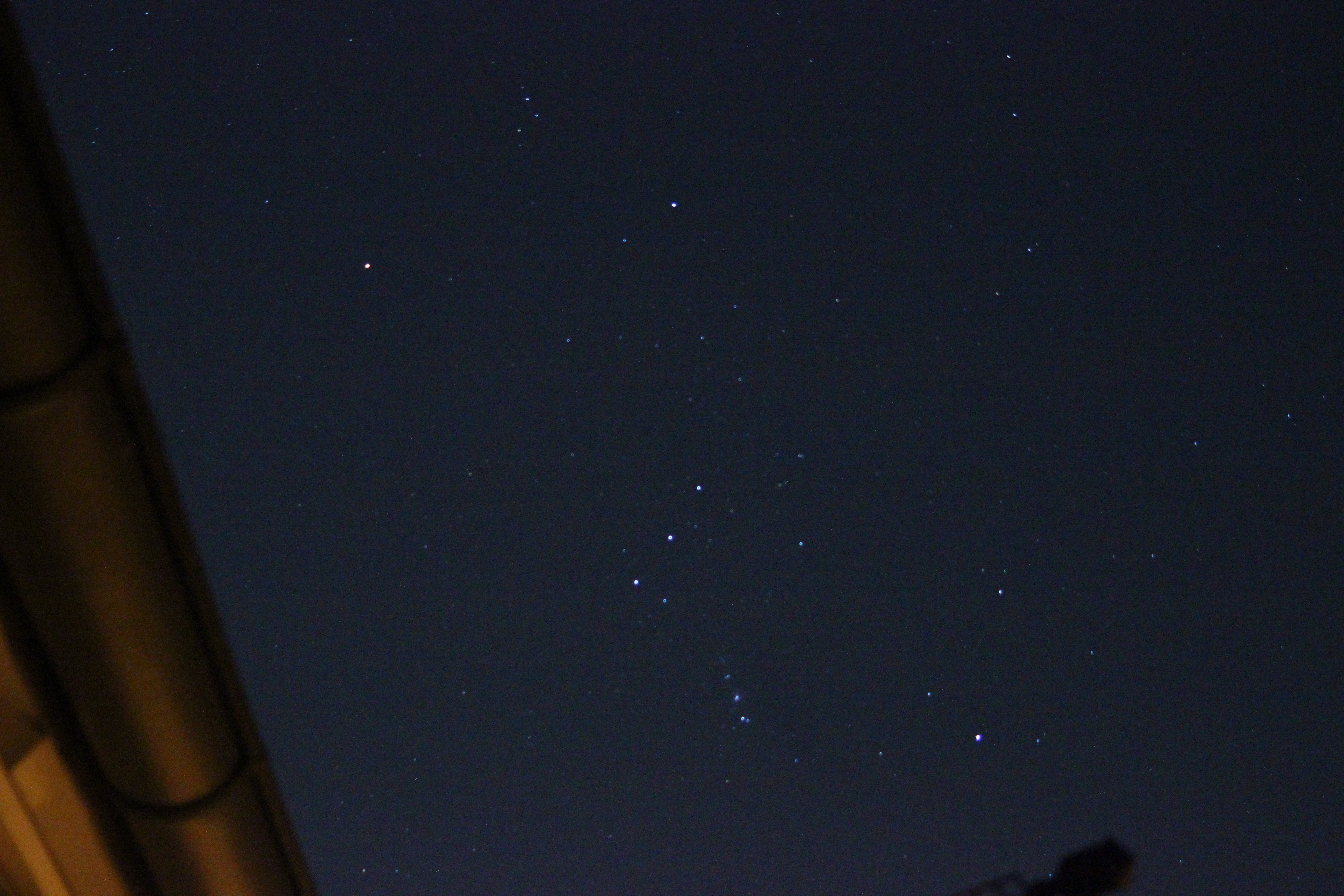 Diese Aufnahme machte ich unter aufgehelltem Stadthimmel. Dennoch sieht man deutlich die wichtigsten Merkmale des Sternbilds Orion.