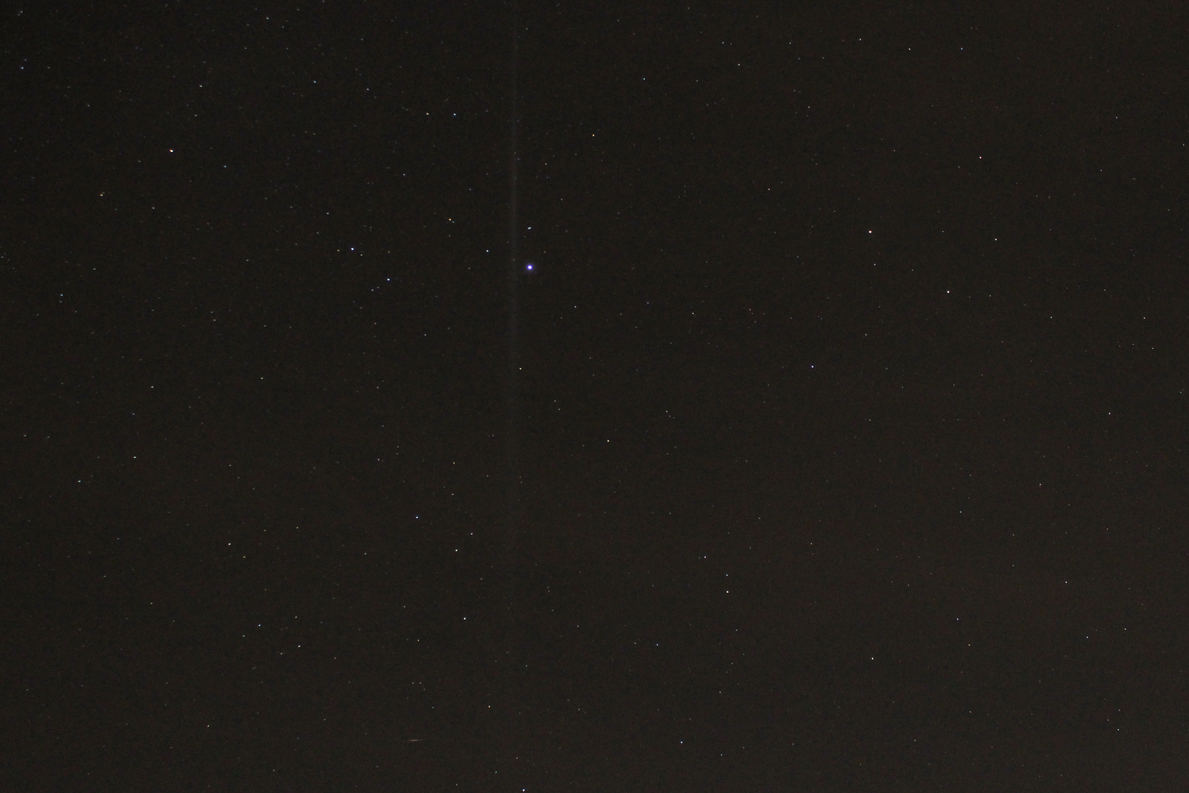 Der Leuchtstrahl erreicht das Sternbild Leier und wird schwächer, ohne seine Form zu verändern!