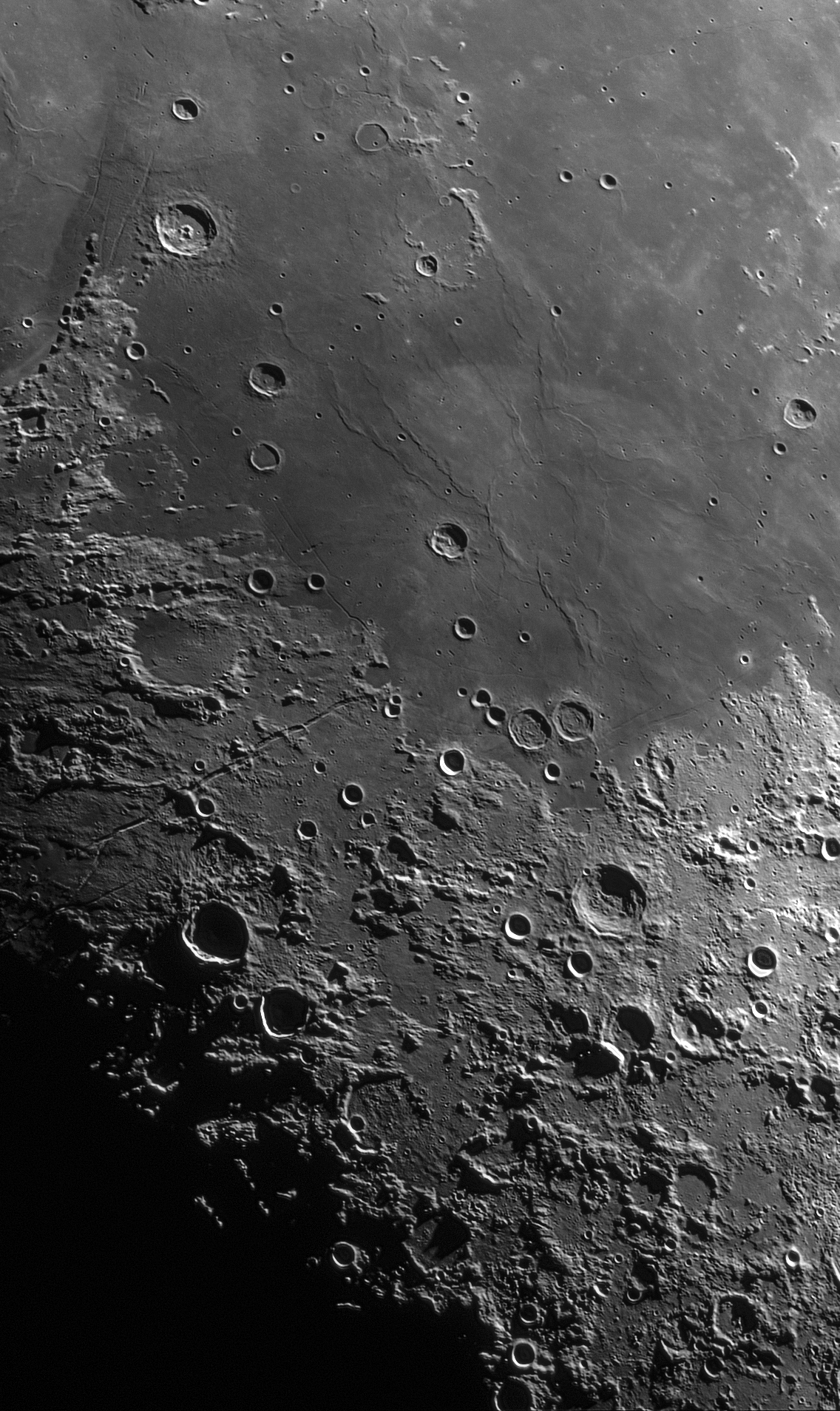 Prominente Krater sind Plinius und Arago (mit seinen beiden Domen). Zum Selbstfinden die Krater Armstrong, Aldrin und Collins, pünktlich zum 50. Jahrestag der ersten Mondlandung.