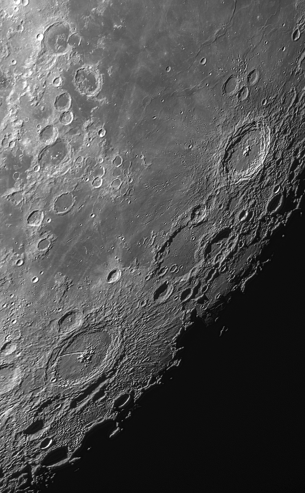 Die beiden bekanntesten Krater der Ostseite des Mondes sind Langrenus und Petavius. Petavius ist von Rillen durchkreuzt und weist einen schönen vulkanischen Dom mit Gipfelkrater auf.