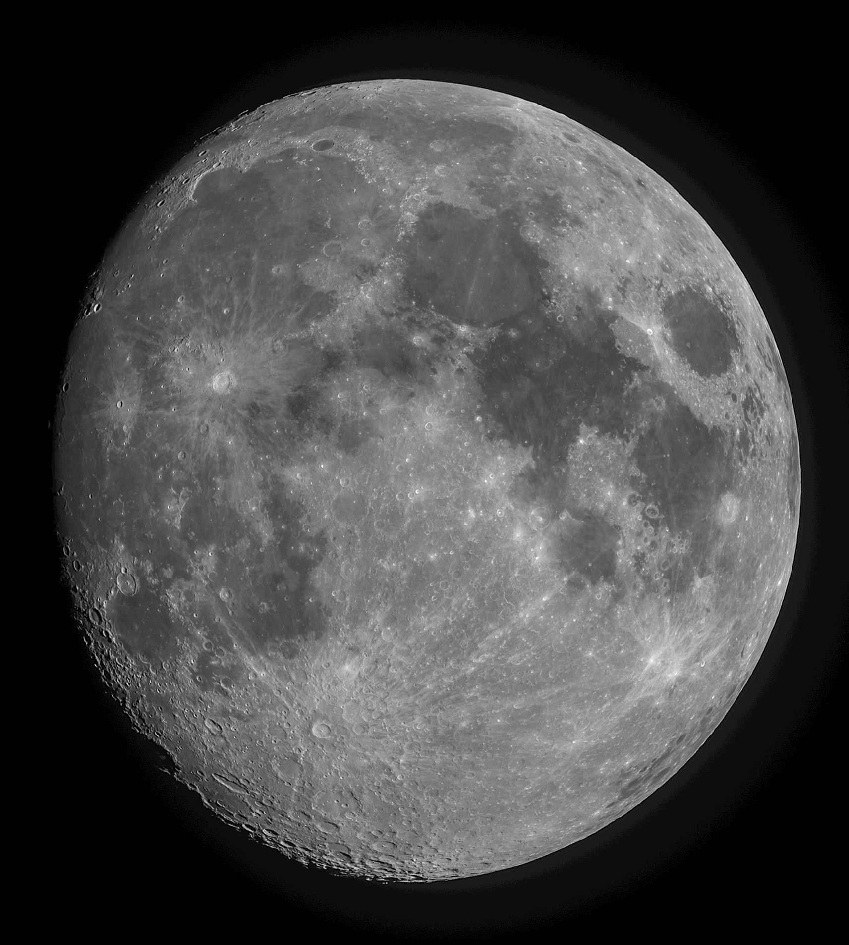 Vier Tage nach dem Ersten Viertel taucht Aristarch auf und eine erste Andeutung des Schröter-Tals. Einige Marius Hills sind auch schon zu sehen. Gassendi ist jetzt perfekt beleuchtet. Leider eignet sich das Seeing bei niedriger Mondstellung nicht für eine Detailaufnahme.
