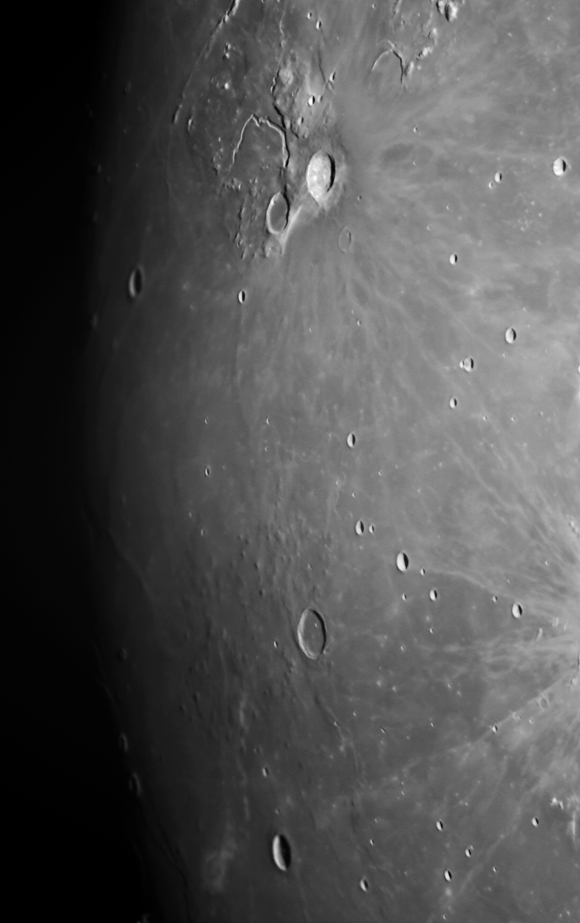 Der Ostrand des Mondes ist reich an vulkanischen Erscheinungen. Das Aristarch-Plateau beherbergt neben dem hellsten Mondkrater-Aristarch- das bekannte Schrötertal mit einer Rille am Talgrund. Die Rille sieht man als Verlängerung des Schrötertals. Im unteren Bildteil tummeln sich die Marius-Hügel, eine Unmenge kleiner Vulkankegel.
