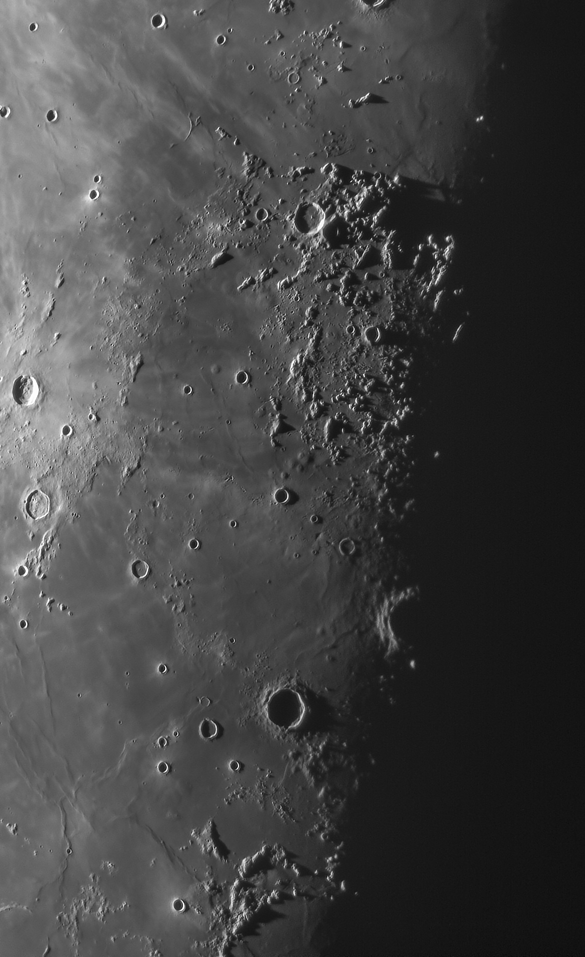 Dome bei Reinhold, Hortensius und Milchius. Diesmal stand der Terminator besonders günstig für die Mondvulkane, was leider vor einem Monat nicht der Fall war. Da hatten die Beobachter in Amerika mehr Glück.