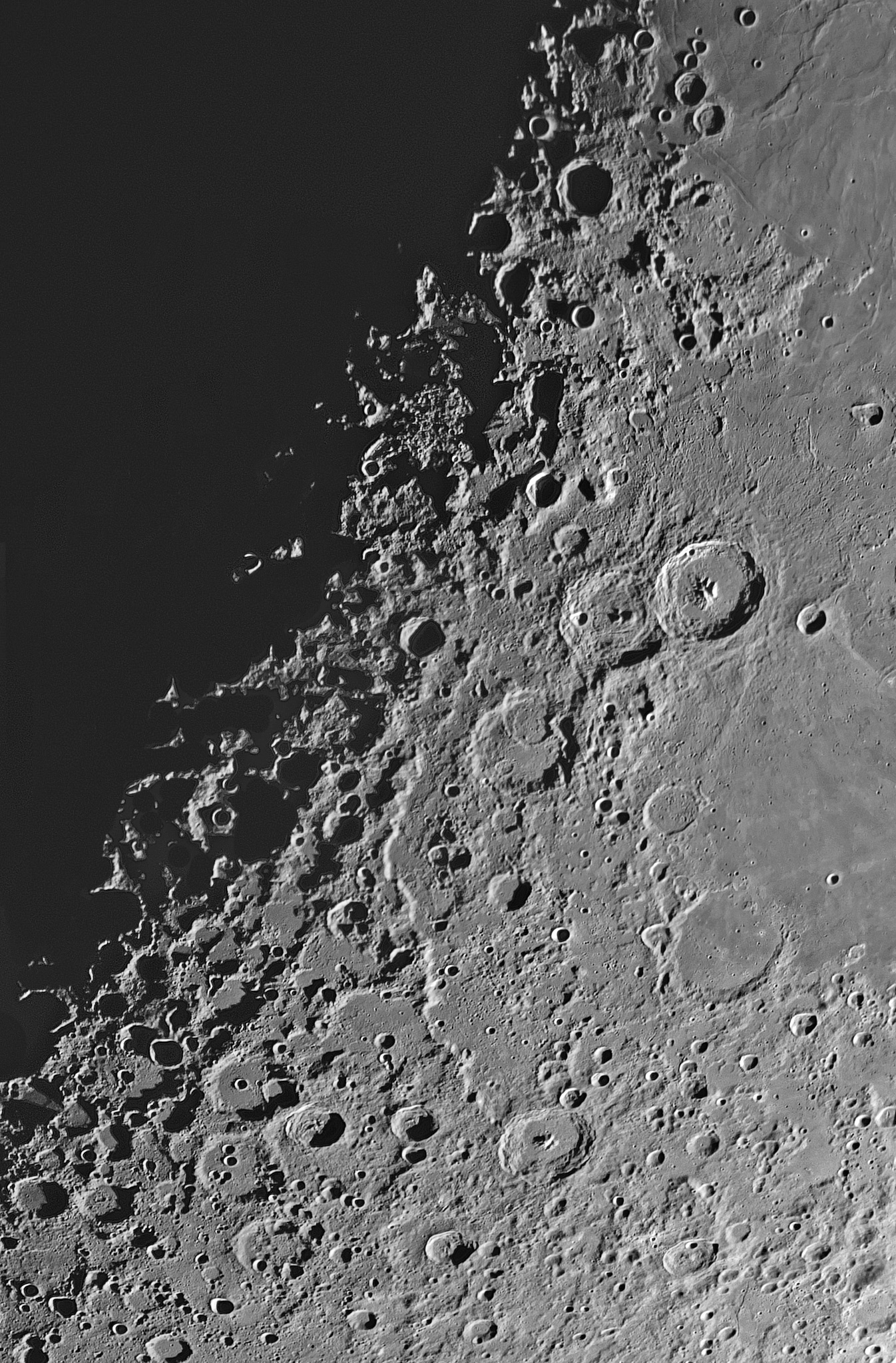 Vom Apollo 11-Landeplatz bis zu Krater Piccolomini am Ausgang der Rupes Altai reicht dieses Mondpanorama und hat einige Schmankerl zu bieten. Darunter natürlich das Dreigestirn Theophilus, Cyrillus und Catharina.