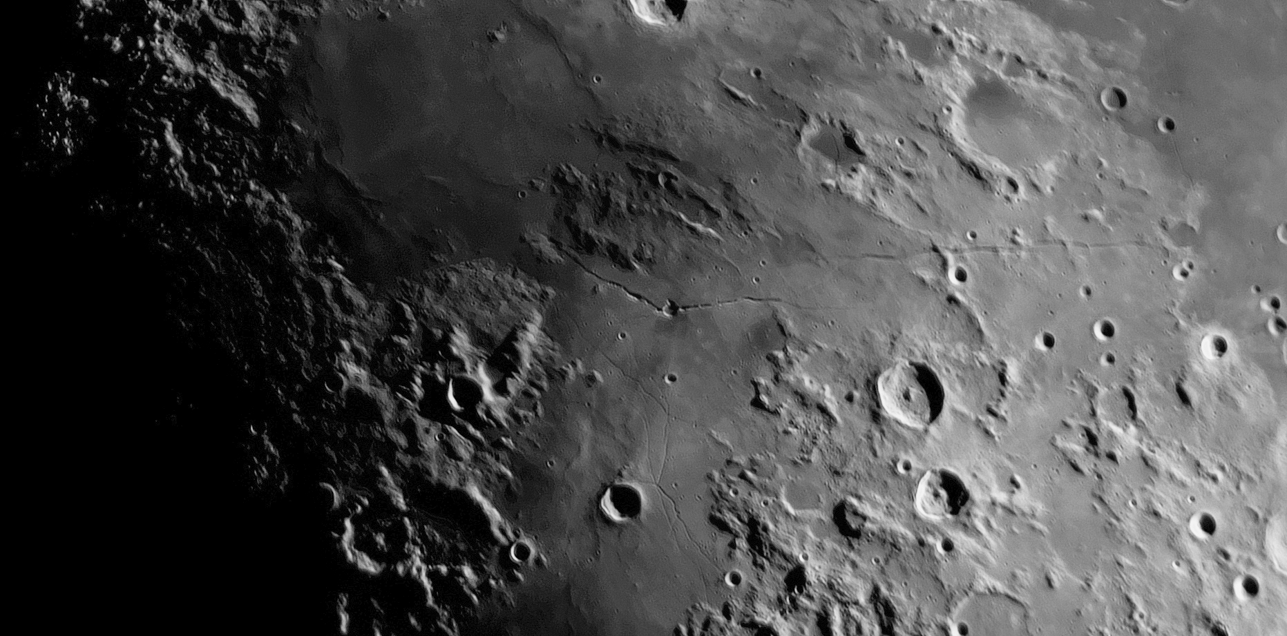 Rillenland: Neben Rima Ariadaeus und Rimae Triesnecker ist besonders Rima Hyginus sehenswert. Die 204 Kilometer lange Rille war vor vielen Jahren ein Lavatunnel, der an manchen Stellen eingebrochen ist und kraterförmige Vertiefungen zeigt. Interessant und nur sehr selten zu sehen ist der kleine vulkanische Dom Hyginus 1 (nördlich der Rille). Er ist nur 9 Kilometer groß und 70 Meter hoch, mit einem winzigen Zentralkrater.