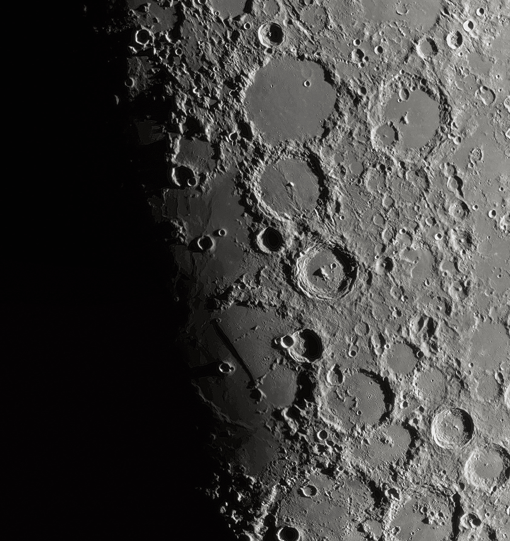 Eine der schönsten Mondlandschaften: die Gegend um die Gerade Wand herum. Panorama aus zwei Bildern.
