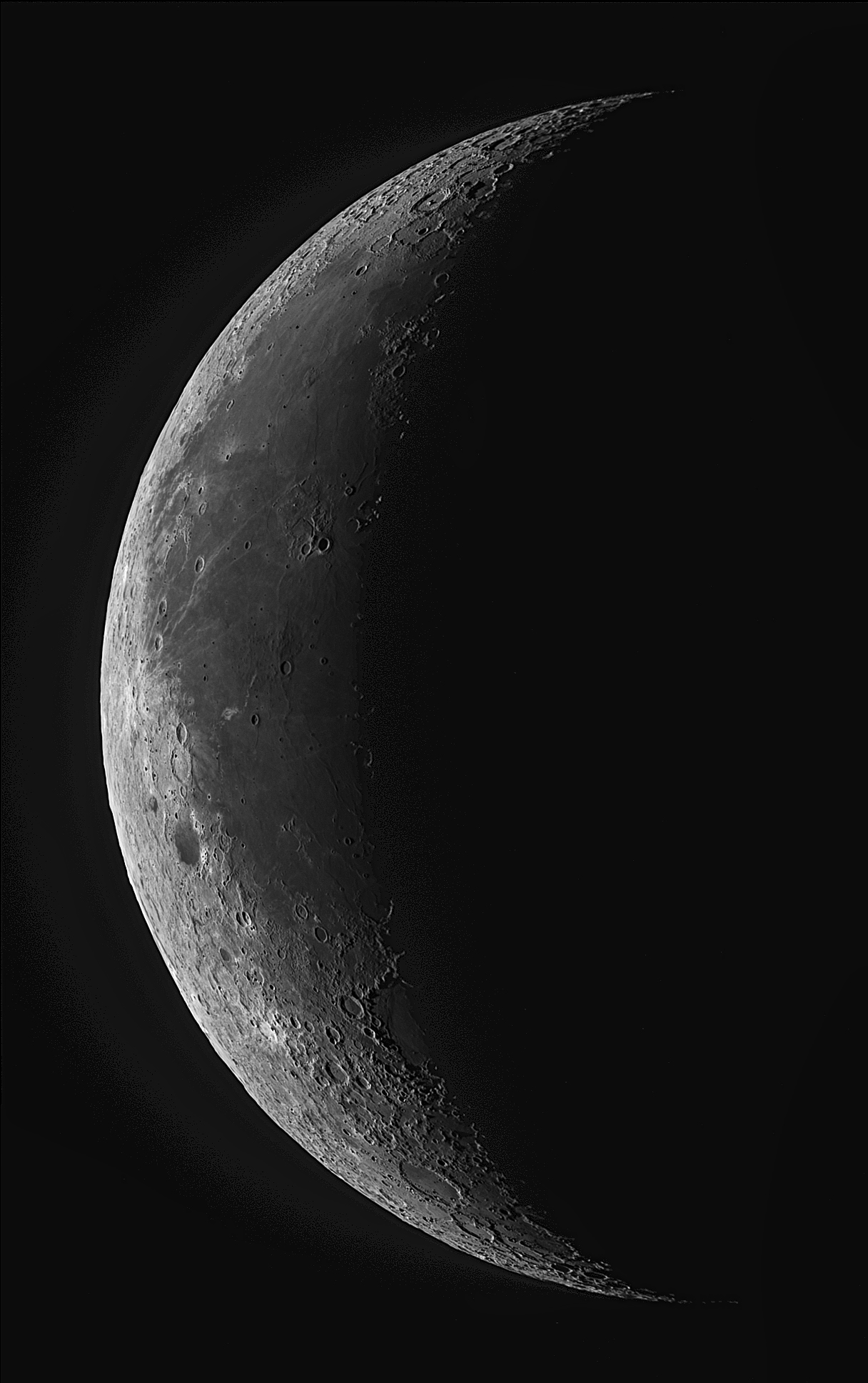 Jetzt geht es mit großen Schritten auf Neumond zu. Vorteil der Kombi CFF 160/1050 mm mit ZWO ASI 174MM: Der Mond passt in ein einziges Bild.