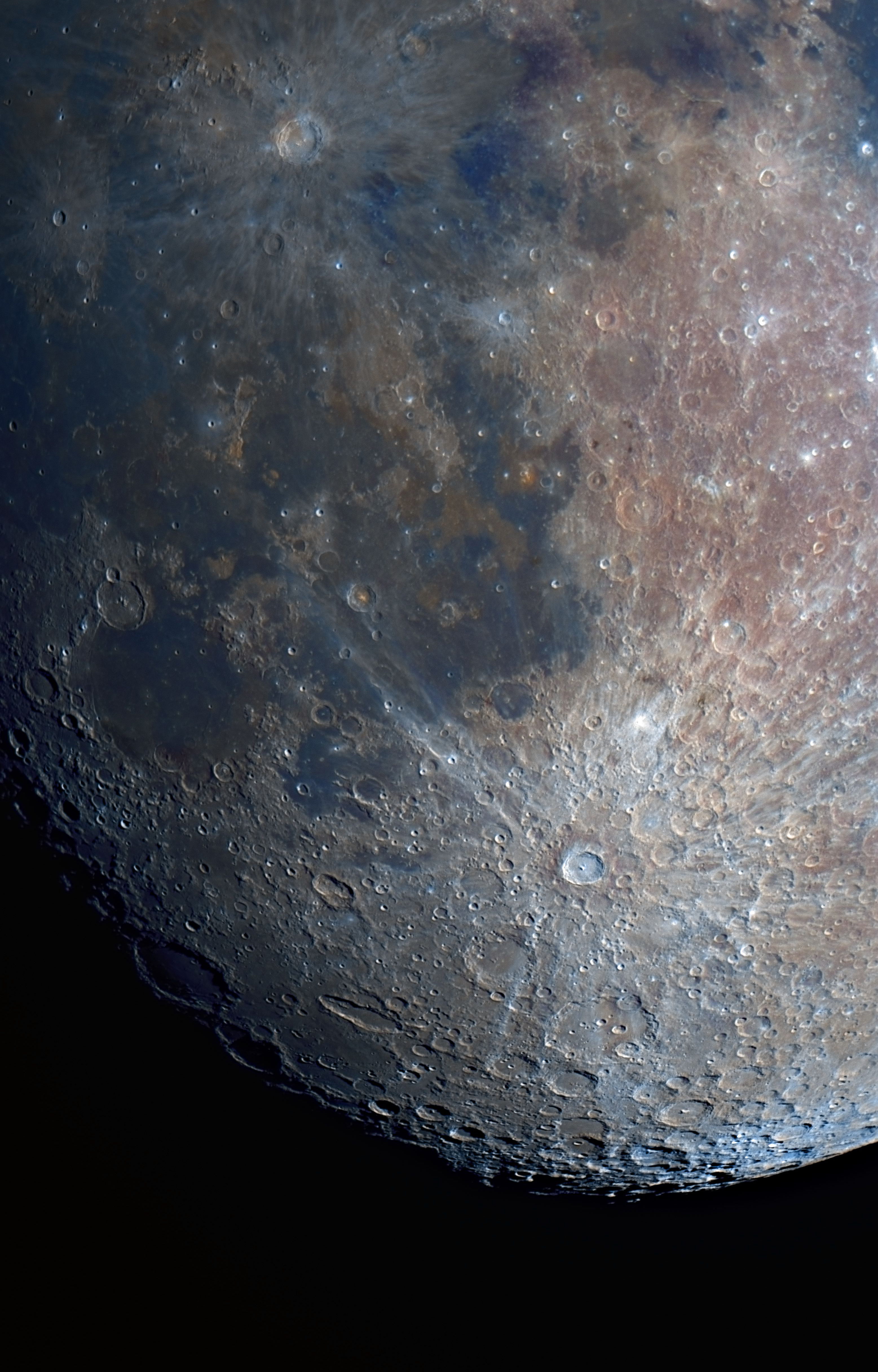 Mit einer Farbkamera lassen sich per Videoastronomie und Bildverarbeitung ein paar wenige mineralogische Eigenschaften der Mondoberfläche darstellen: