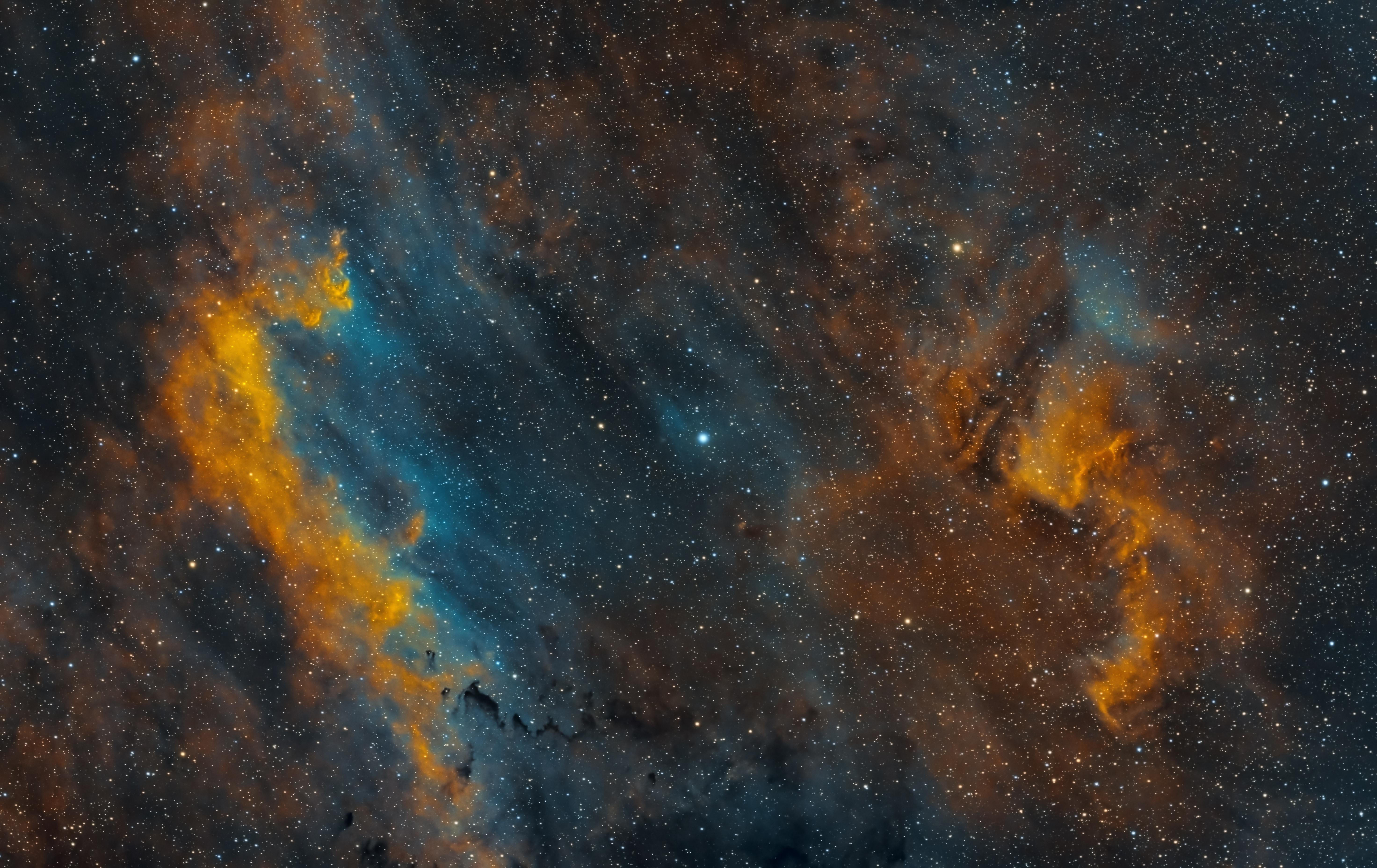 Sh2-119 ist ein diffuser Nebel, der im Sternbild Schwan beobachtet werden kann. Seine Form ähnelt zwei Muscheln, die östlich und westlich von 68 Cygni angeordnet sind; der östliche Teil ist der größte. Im südlichen Teil sind dünne Filamente und Kokons aus dunklem Nebel sichtbar, die einen starken Kontrast sowohl zum Licht des Nebels als auch zum reichen Sternenfeld im Hintergrund bilden. Die Entfernung von Sh2-119 wird auf 2200 Lichtjahre von uns geschätzt. 🌟 Seine Schönheit besticht durch eine Vielfalt an Farben, die von tiefem Blau bis hin zu feurigem Rot reichen. Dieser Nebel ist das Ergebnis der Wechselwirkung zwischen jungen massereichen Sternen und dem umgebenden Gas, die eine Explosion von Farben und auffälligen Formen erzeugt. 🌠 Das Bild zeigt deutlich die Gas- und Staubwolken, aus denen diese Sternregion besteht, während das Licht der beleuchteten Sterne dazu beiträgt, eine surreale und faszinierende Atmosphäre zu schaffen. 🪐⭐ #Astronomie #Nebel #DeepSpace