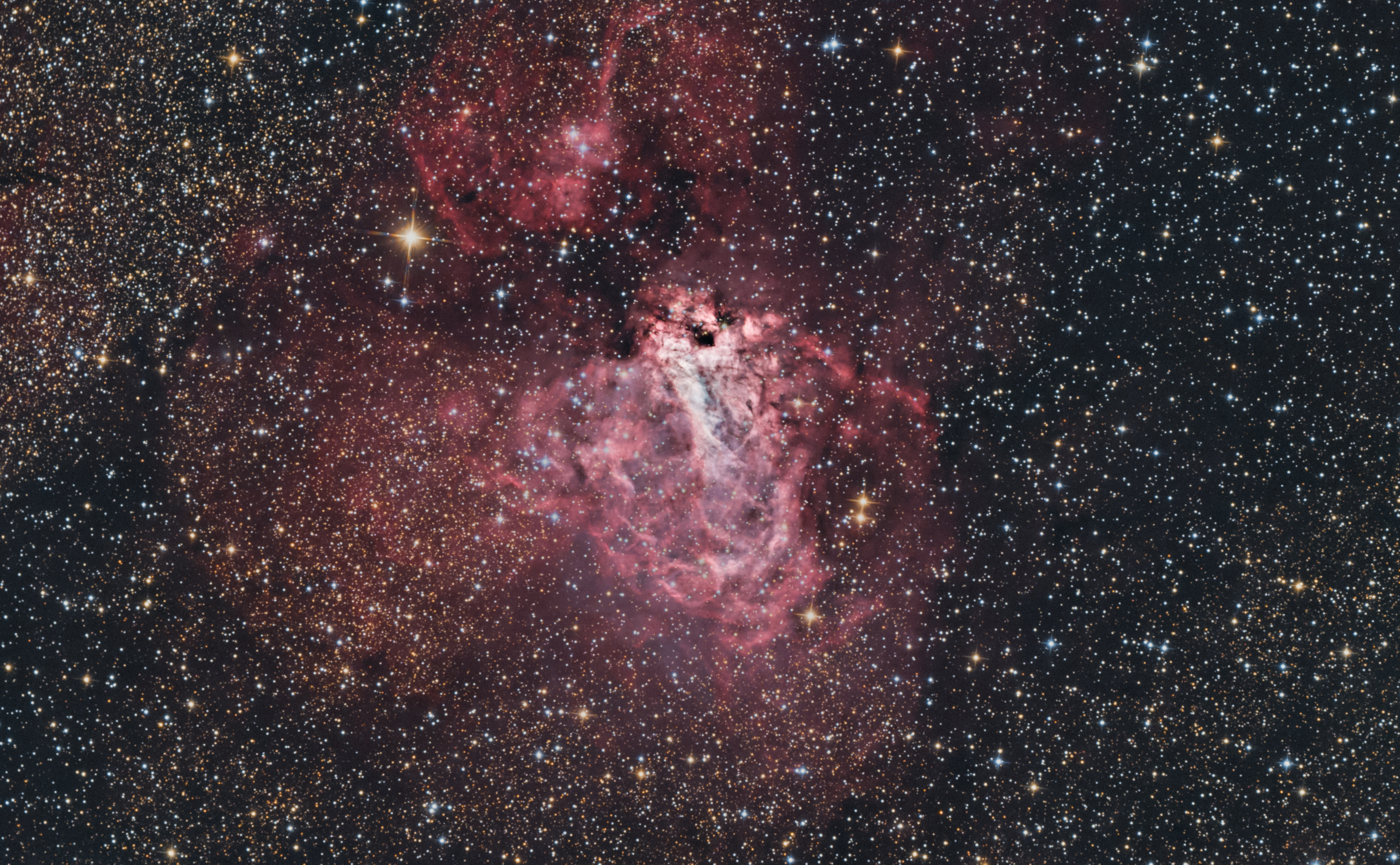 Mehrere Stunden saß mein 16-jähriger Sohn nachts vor seinem Teleskop. Es wurden H-Alpha- und RGB-Daten gesammelt. Wir finden, dass es super geworden ist.