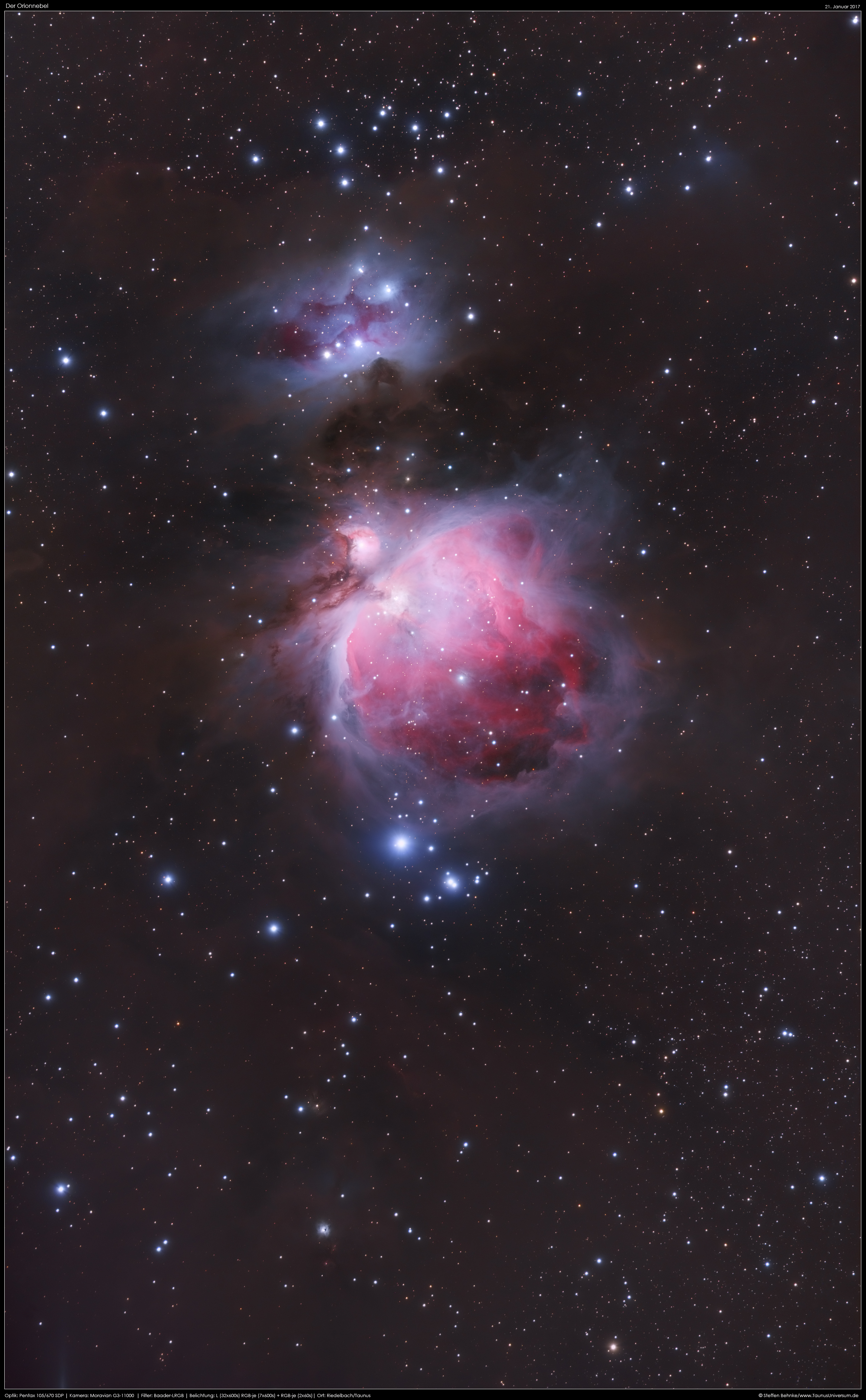 Der Orionnebel ist immer wieder schön anzusehen und er ist auch mit bloßem Auge zusehen. Die Aufnahme ist vom Januar 2017 und ein reines L-RGB-Bild. Belichtet wurden 8 Stunden und für den Kern wurden ein Paar kurze 60 Sekunden Aufnahmen erstellt.