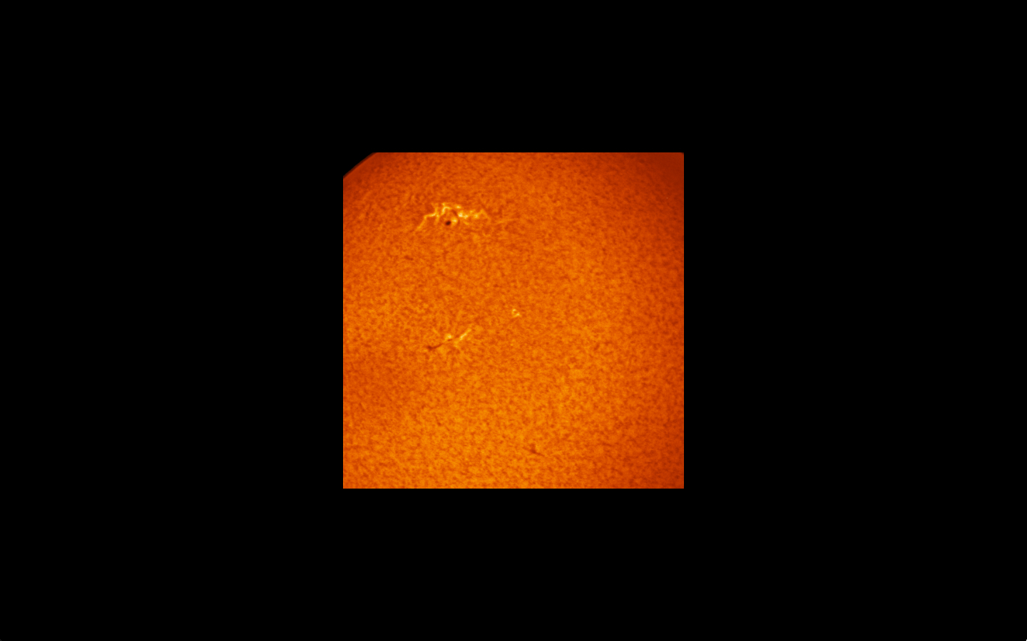 Der Sonnenfleck liegt in einem starken Fackelgebiet, das in der H-Alpha-Aufnahme gut zu sehen ist.