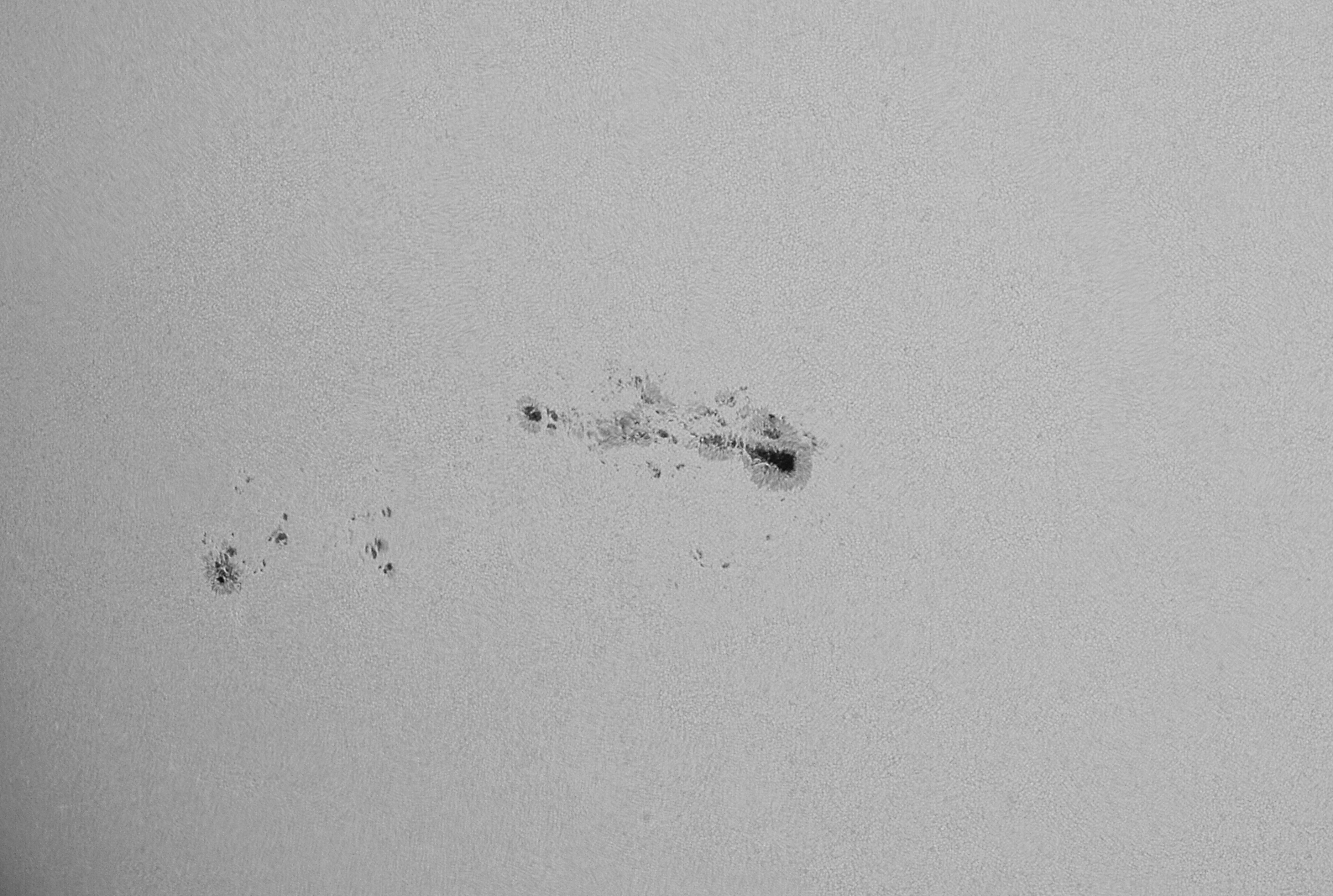 | Teleskop/Objektiv | Refraktor ED 102/920 mm mit zweimal Zweifach Fotokonverter=3680mm Brennweite Selbstbau-Sonnenprisma mit Solar-Continuum Filter (540nm) und 8x Graufilter |