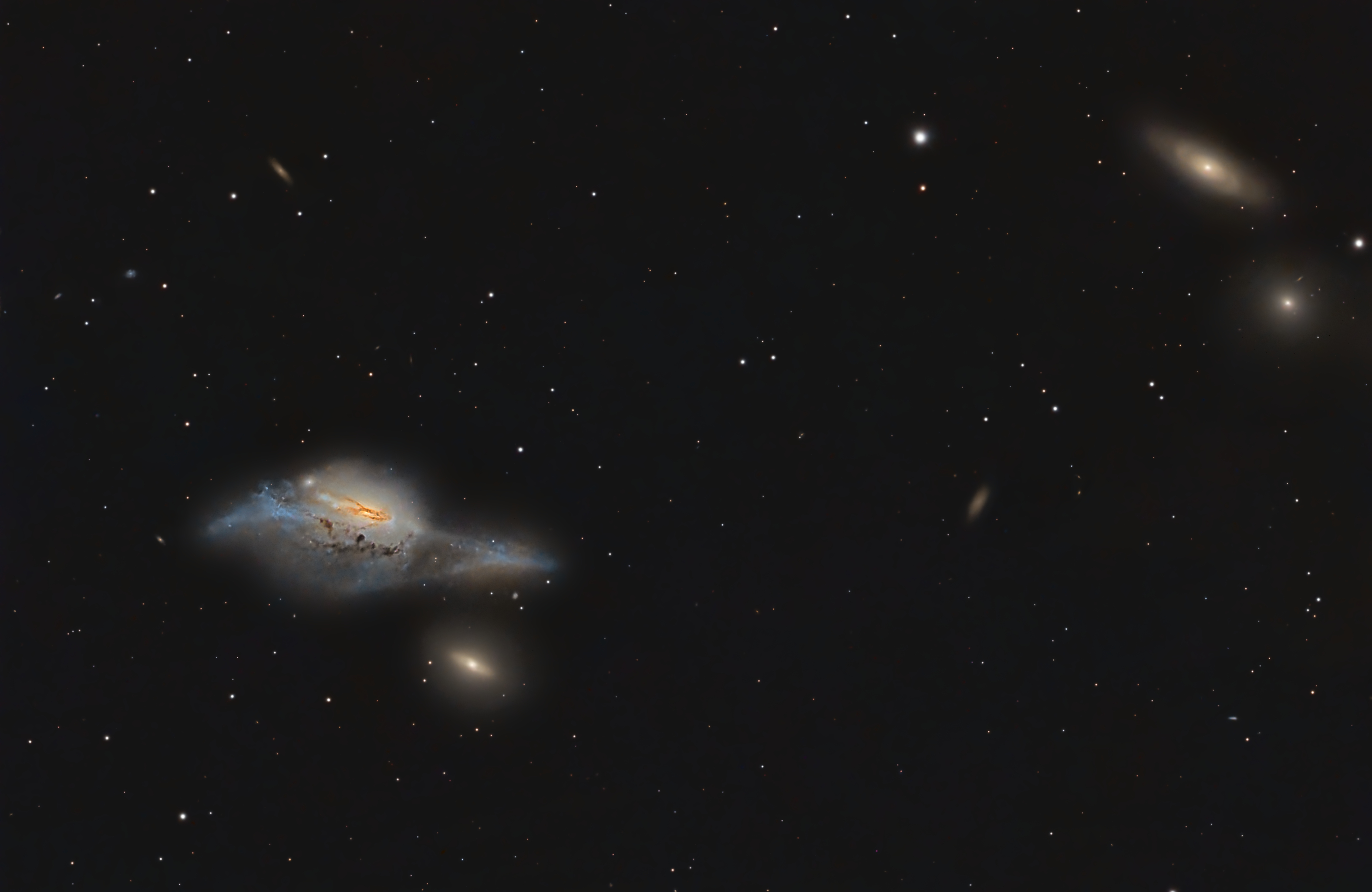 Die Augen-Galaxien zusammen mit dem optischen Galaxienpaar Holm 411 (NGC 4461 und NGC 4458), rechts oben im Bild, war die perfekte Bildkomposition für die erste Aufnahme mit meinem C925 Edge HD bei voller Brennweite von 2350 mm, f10. In den wenigen klaren Aprilnächten konnte ich genügend Belichtungszeit sammeln, um diese wundervolle Region in der Markajanschen Kette visuell sichtbar zu machen.
