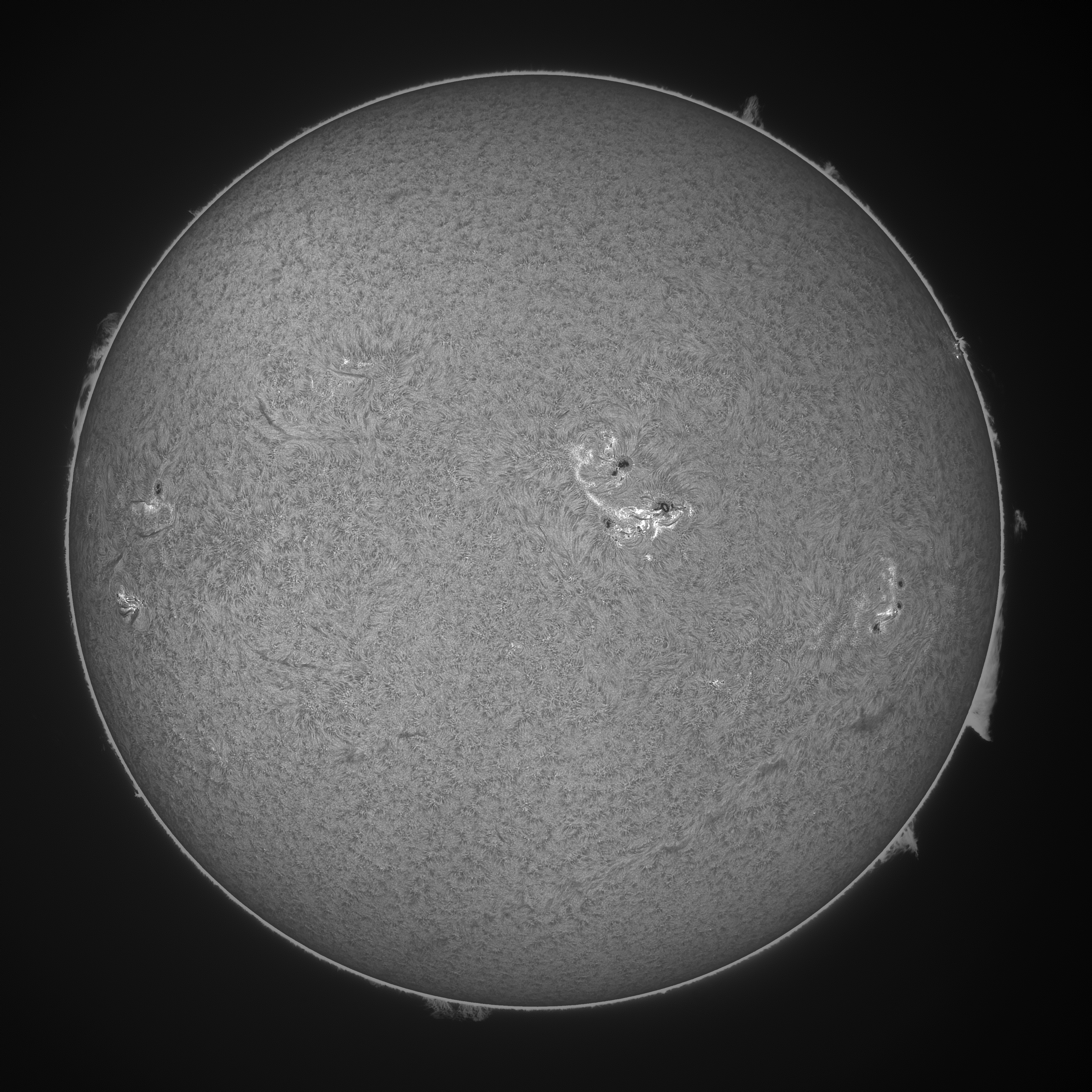 The entire solar disk in H-alpha today, August 6, 2025, at 7:55 UTC