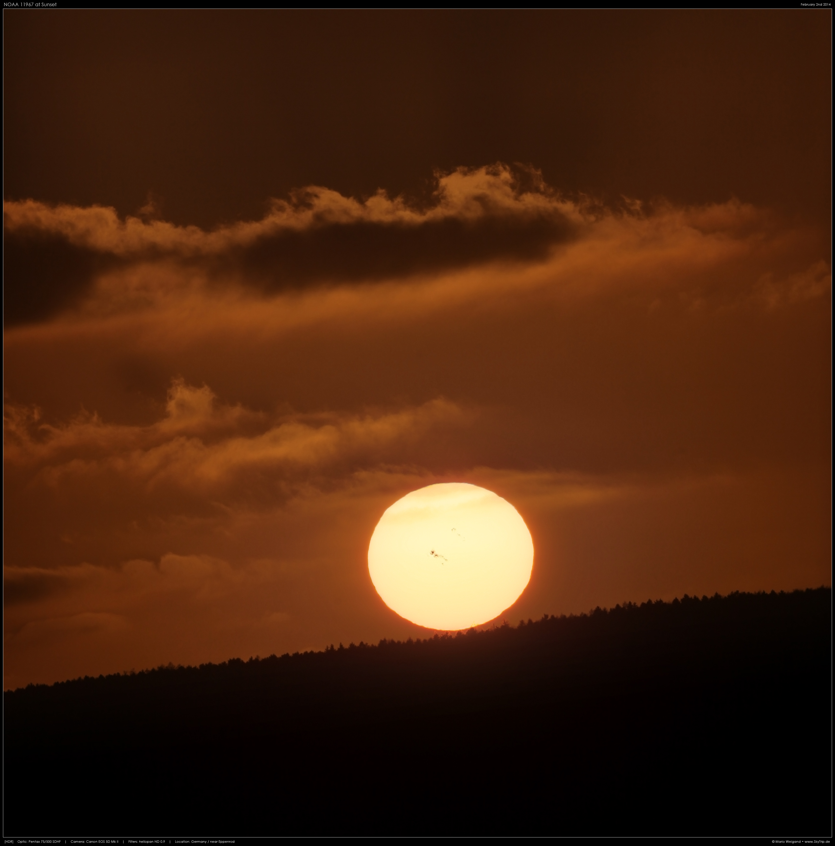 Leserbilder Astronomie: Die große Fleckengruppe NOAA 11967 bei Sonnenuntergang