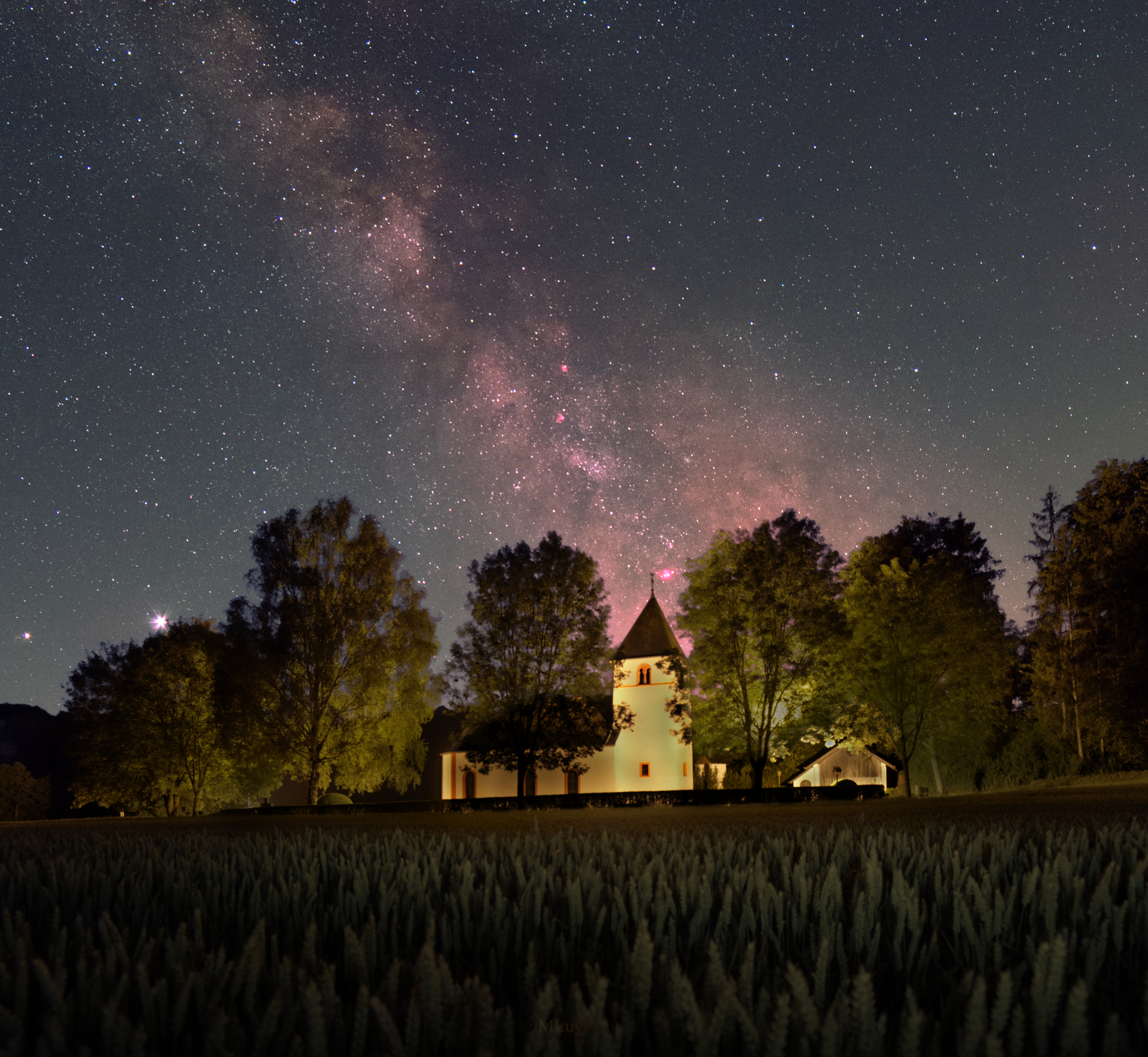 Sie steht einsam und verlassen zwischen Wiesen und Wälder im idyllischen Mannebachtal auf dem Saargau im Landkreis Trier-Saarburg. Ihre Geschichte geht bis in das 11. Jahrhundert zurück. Ursprünglich war sie die Pfarrkirche der aufgegebenen Gemeinde Littdorf und ist das einzig verbliebene Gebäude dieser Siedlung aus dem 8. Jahrhundert. Heute dient sie als Pfarrkirche der Pfarreien Gemeinschaft Saarburg. Der Jakobusweg zwischen dem Streckenabschnitt Trier und Metz führt direkt an St. Jakobus vorbei. Über ihr zeigt sich der Sternenhimmel mit der Milchstraße vom Sternbild Schütze bis zum Adler. Links im Bild, dicht über den Bäumen, strahlen die Planeten Jupiter und Saturn als hellste Gestirne.