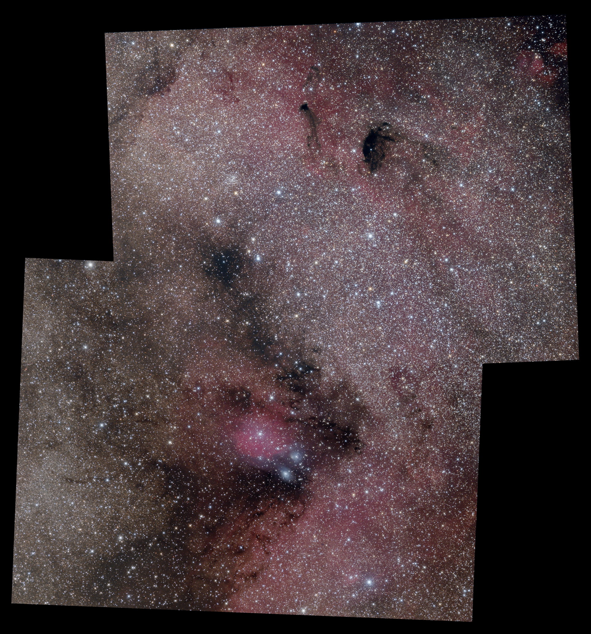 | Nachbearbeitung | Theli: Kalibierung, Stacking, Astrometrie und Fotometrie - MaximDL: LRGB-Komposit - PixInsight: Mosaikerstellung - Endbearbeitung: Fitswork, Photoshop & ACDSee |