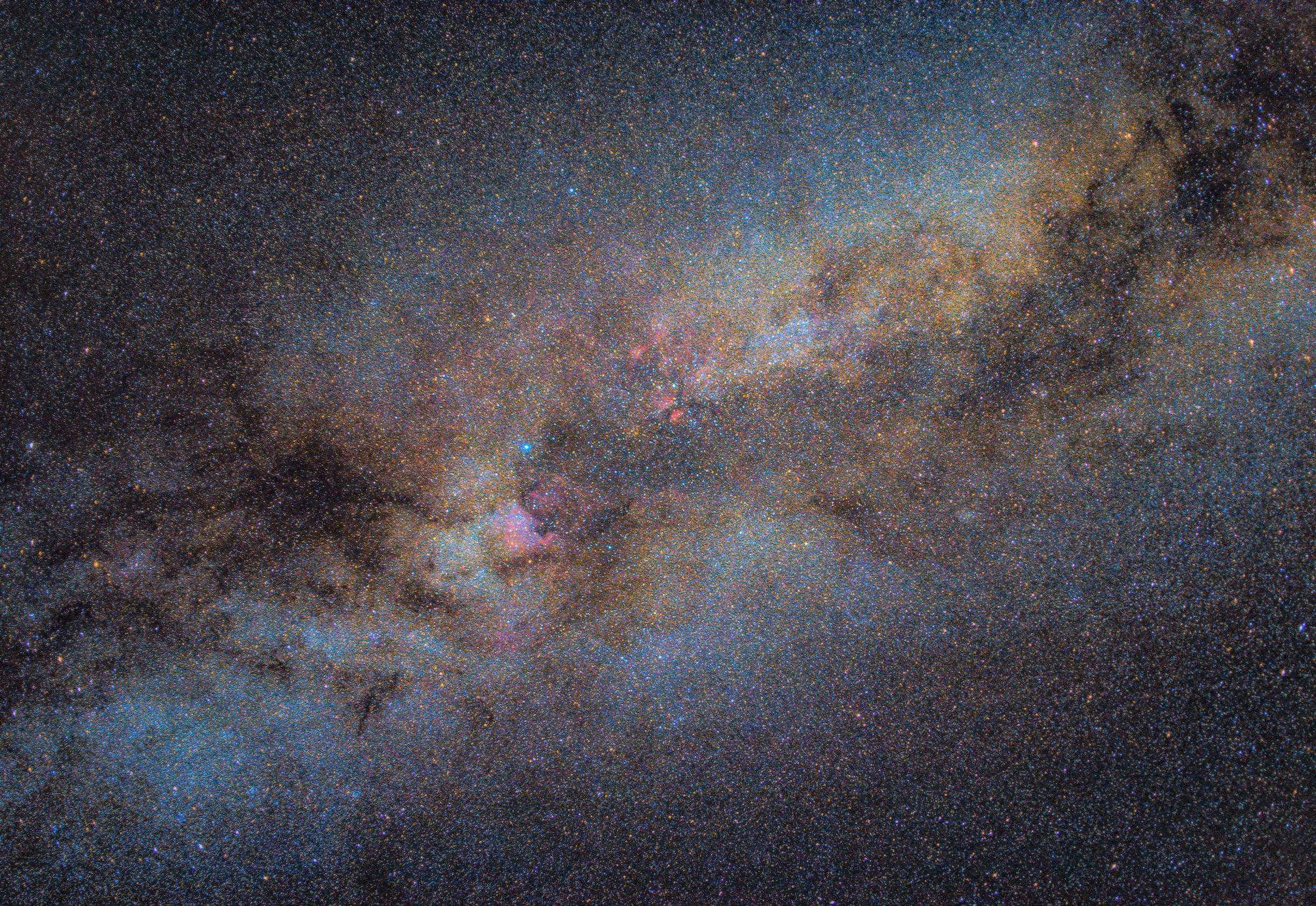 Astrofotografie mit absolutem Minimum-Equipment. Während mein Teleskop die ganze Nacht den Tulpen Nebel aufgenommen hat, hab ich mit einer zweiten Kamera (nicht modifizierte Canon 600D), einem 24 mm f2,8 und einem Videostativ versucht die Milchstraße zu knipsen. 10 Sekunden ist die maximale Belichtungszeit ohne Nachführung, damit die Sterne halbwegs rund bleiben. Ich hätte nicht gedacht dass das so gut funktioniert. Für nur sechs Minuten Gesamtbelichtungszeit bin ich echt zufrieden.